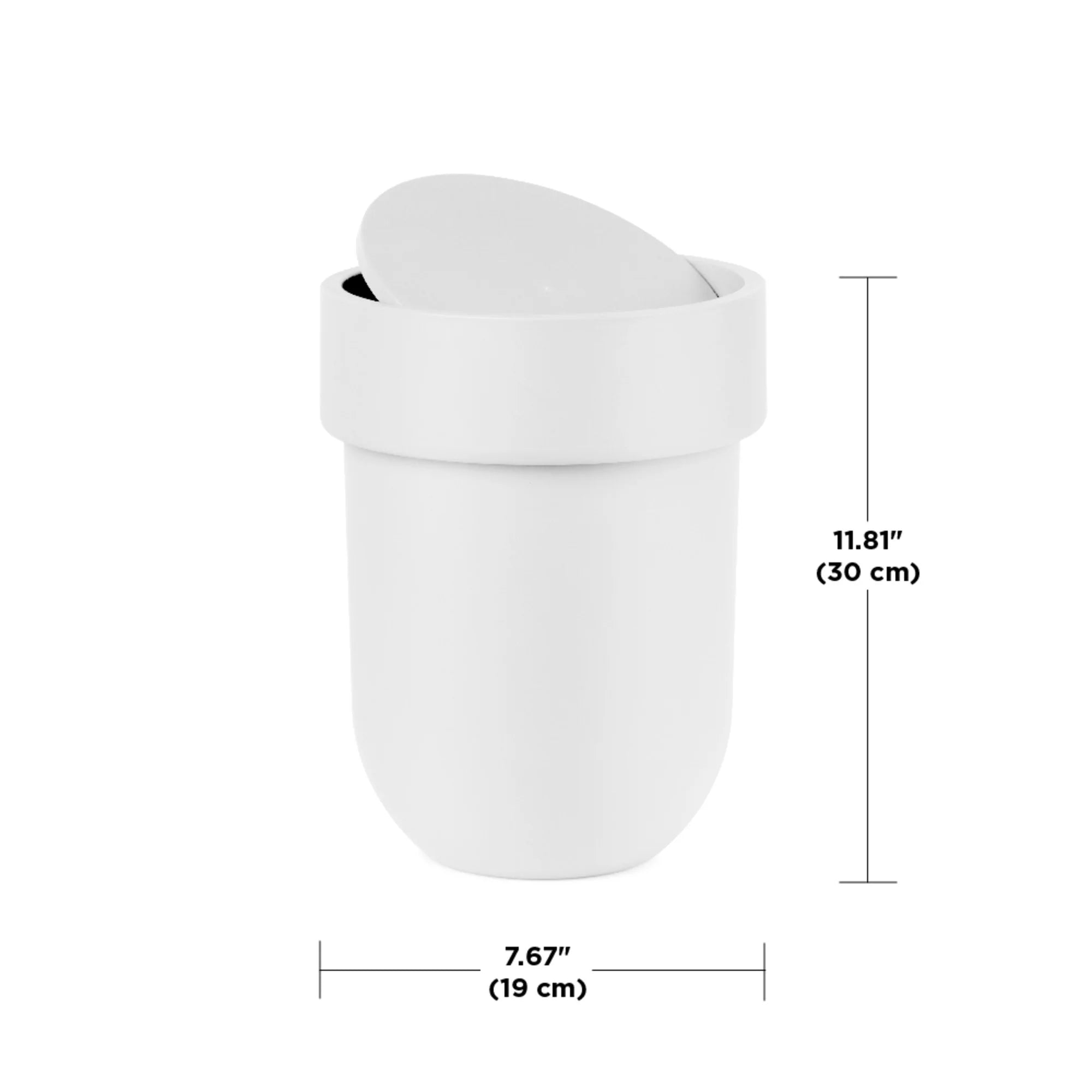 Touch is a modern alternative to the traditional trash can. Touch's soft, matte finish gives it a modern and luxurious feel, while its flat swing lid will keep garbage concealed. Sleek in size, Touch measures 7½ x 12 inches (19 x 30 cm), and holds 1.6 gallons (6L), so you won’t have to take out the trash too often.