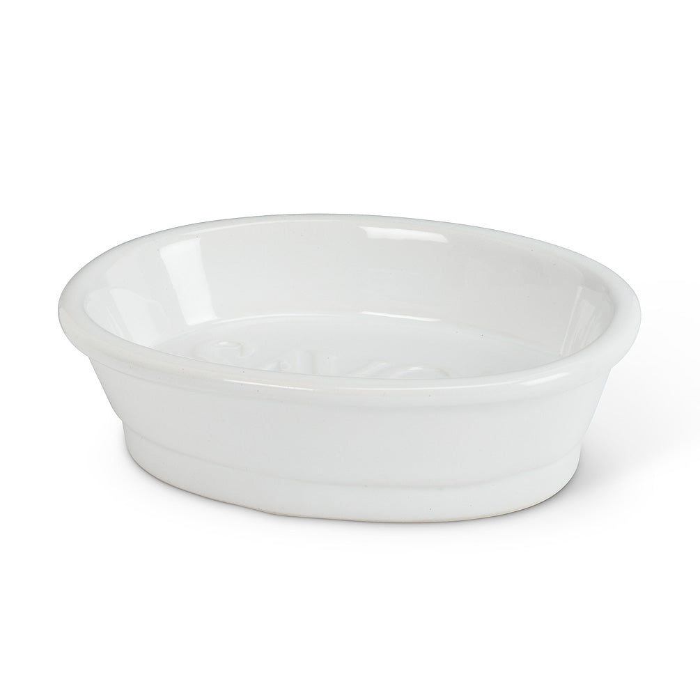 Bring sophistication to your salle de bain with this pure white French inspired ceramic soap dish.
