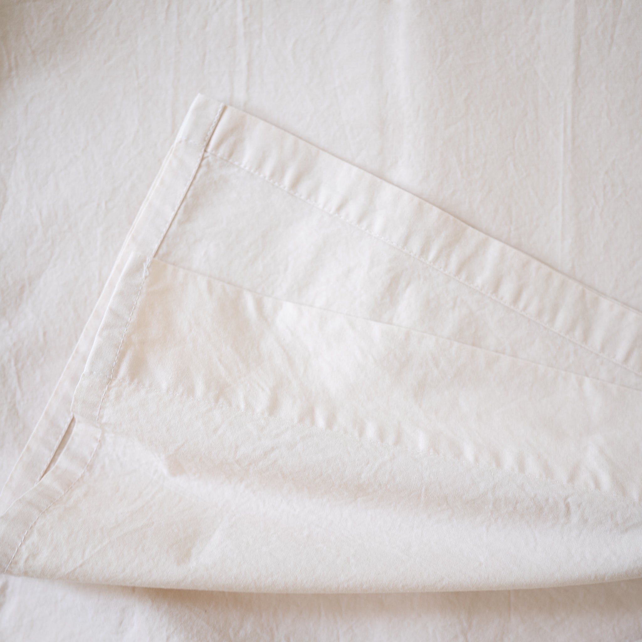 Our Percale Cotton Flat Sheet brings quality and comfort to your bedscape. Choose from White, Petal, Sage, and Oat for a dreamy aesthetic. Percale Cotton has a matte finish, feels crisp, and resists wrinkles—ideal for hot summer nights. Plus, it washes beautifully and becomes softer over time. Crafted with a large hem on the top edge.
