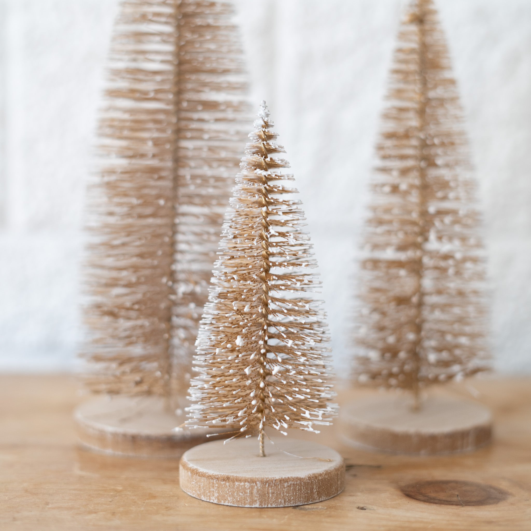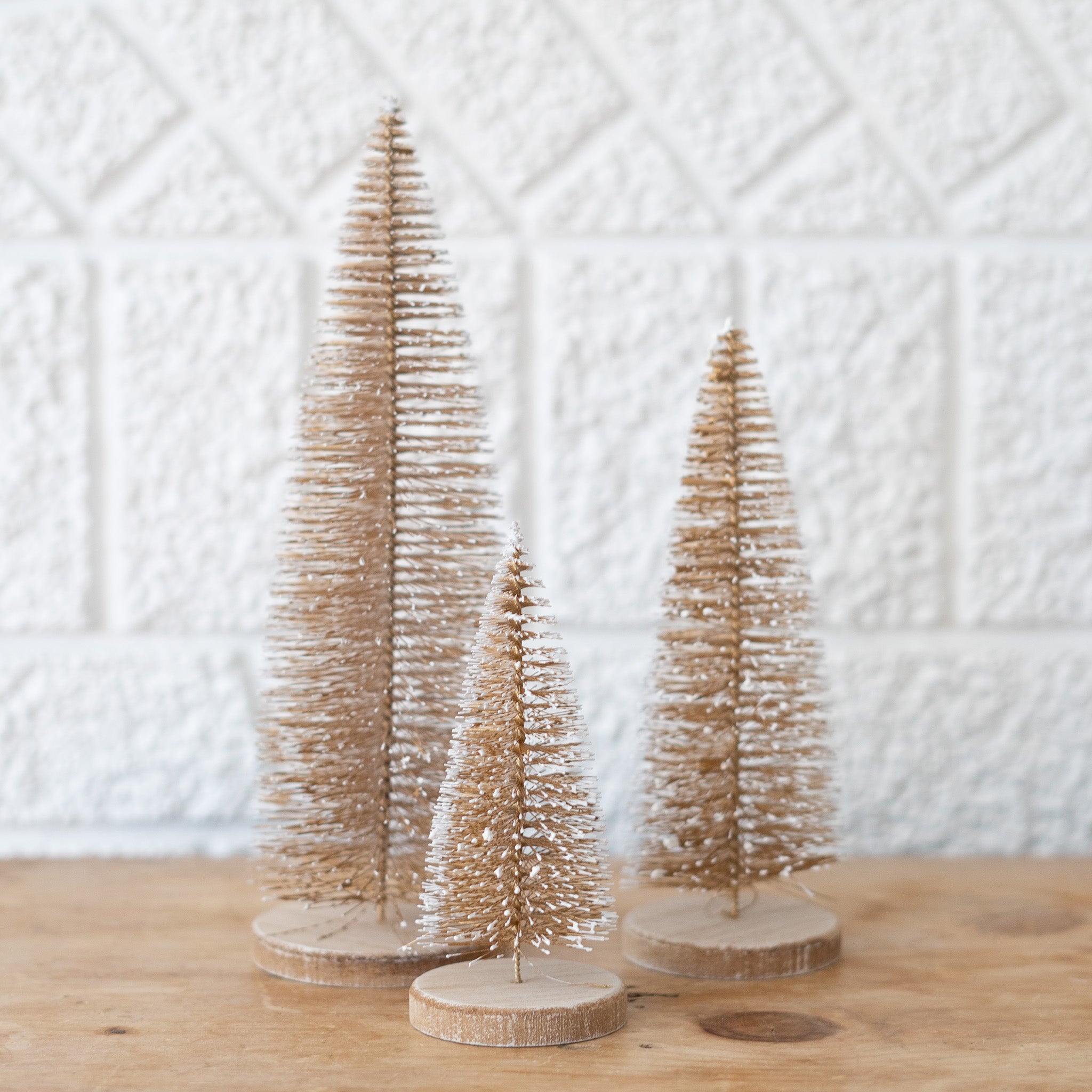 Gold Bristle Tree on Wood Base - Set of 3