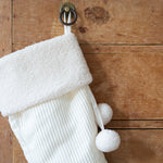 Off-white corduroy stocking with boucle cuff and balls 18in