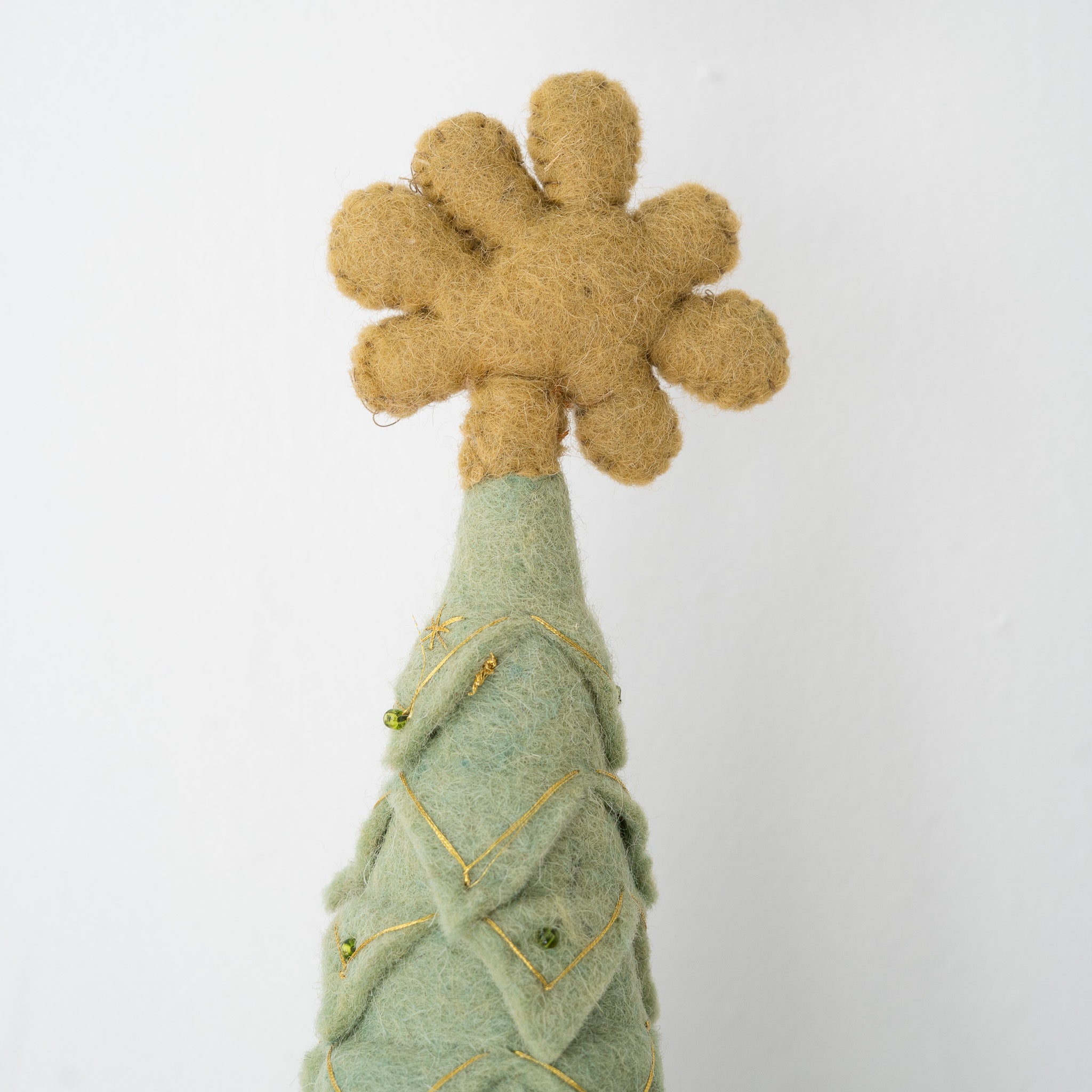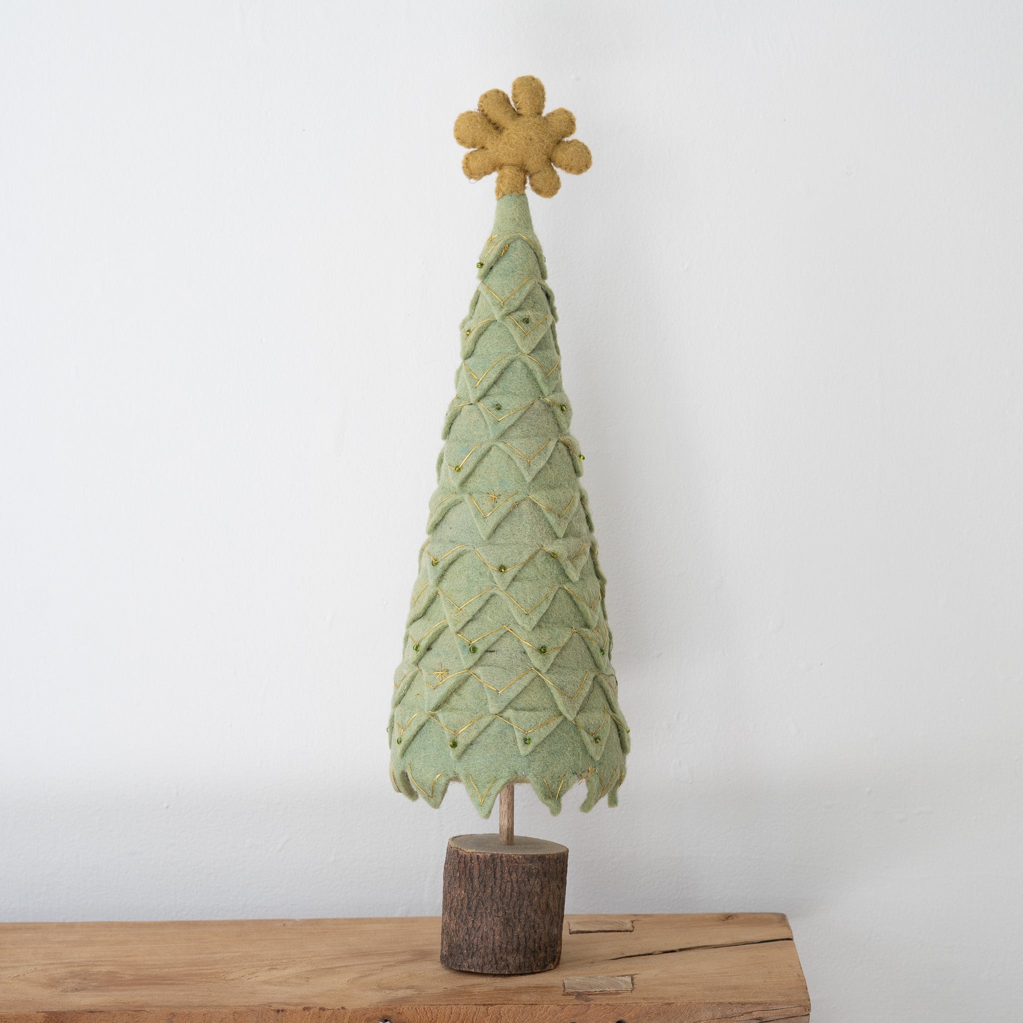 Handmade Wool Felt Christmas Tree with Star & Wood Slice Base