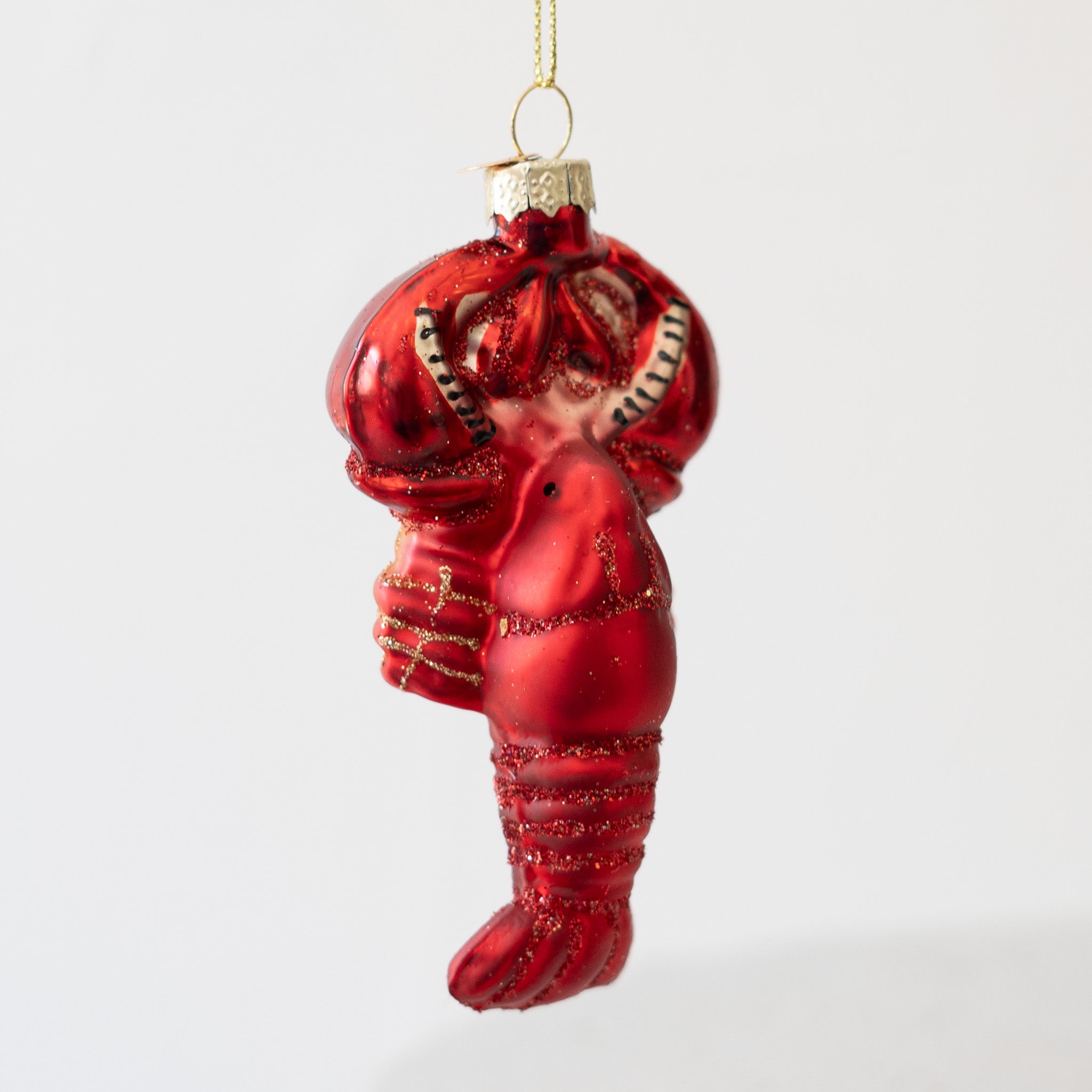 Seafood lovers are sure to delight in this evocative Classic Lobster Ornament. Crafted out of glass, this ornament shaped like everyone's favourite shellfish is accented with golden glitter for a succulent, appetizing addition to any Christmas tree.