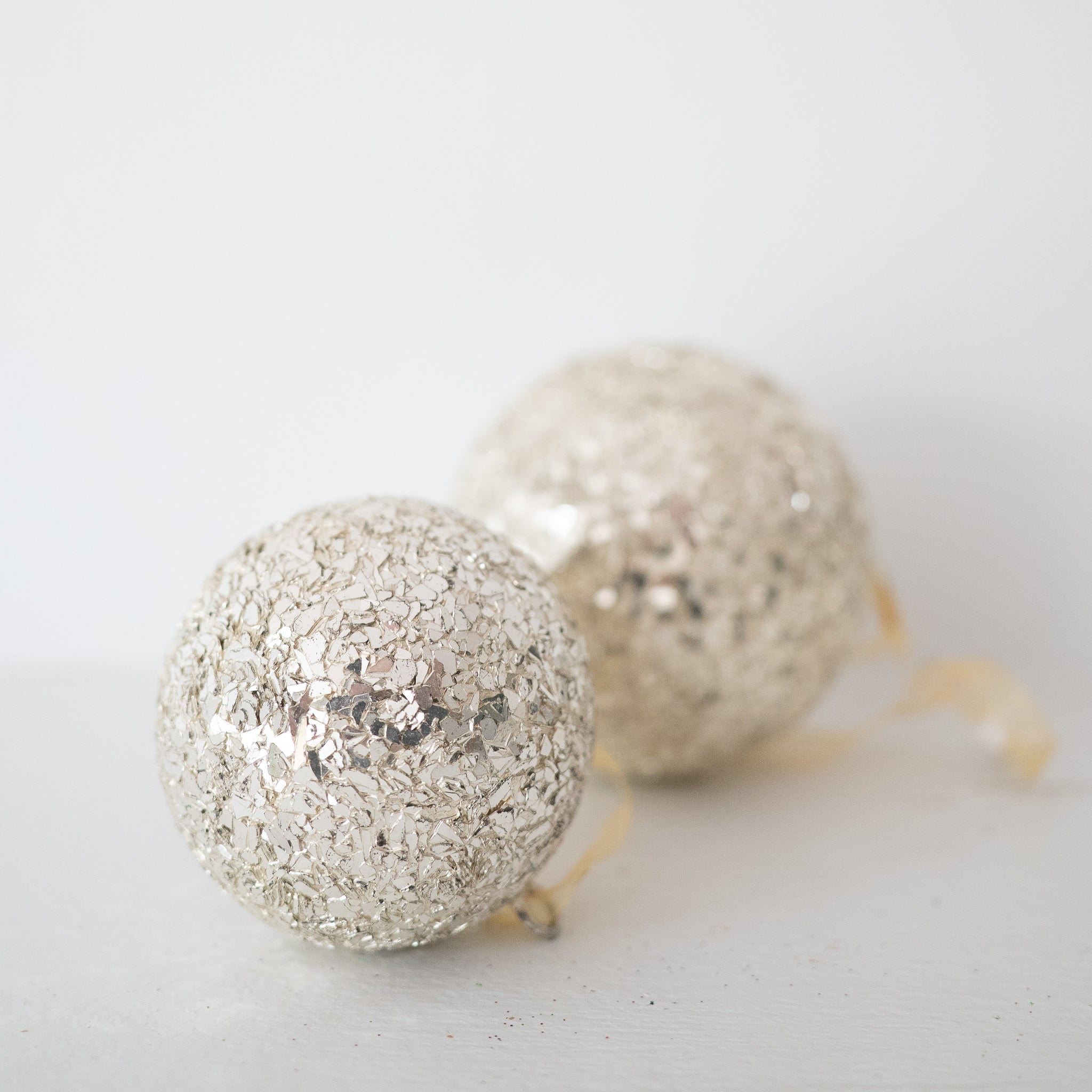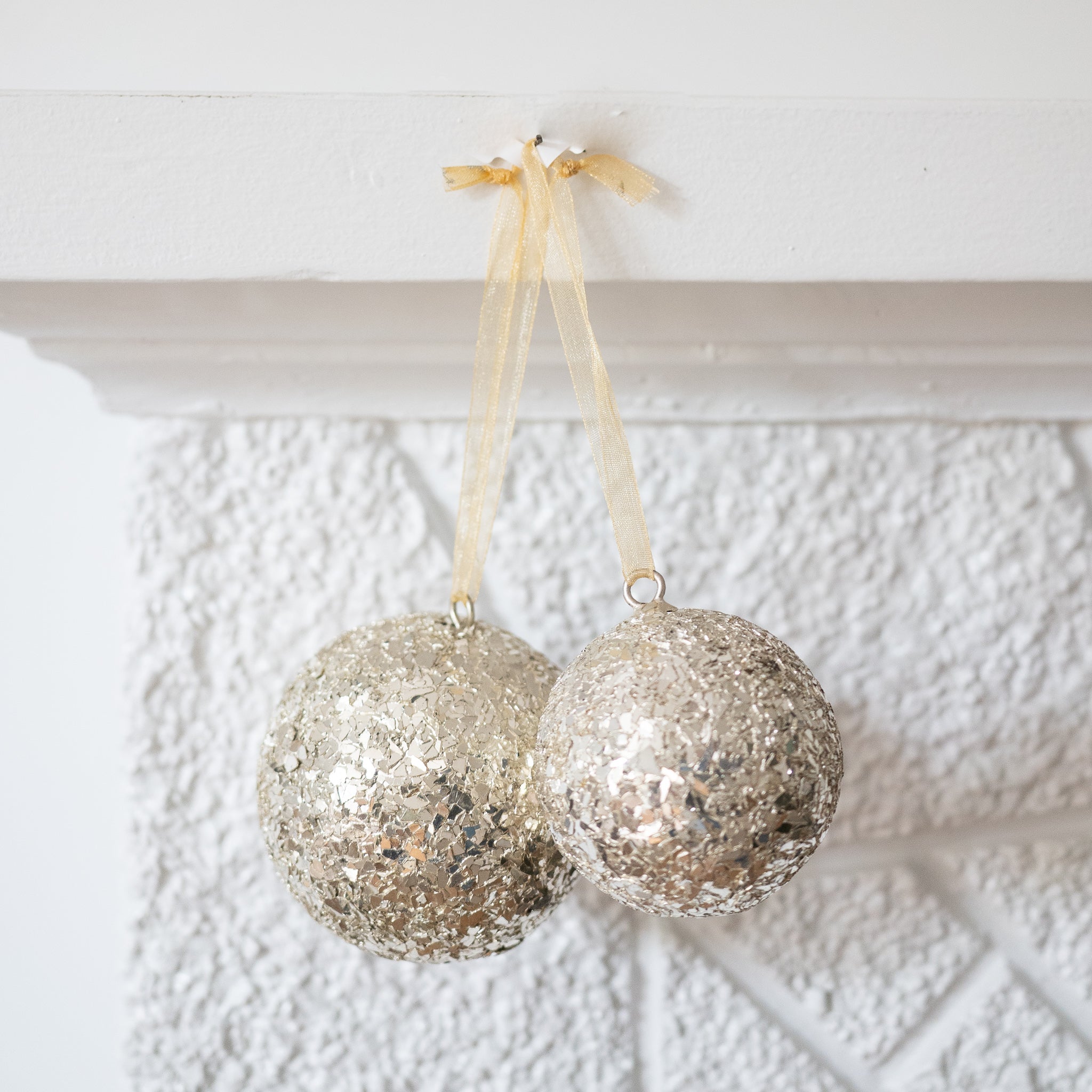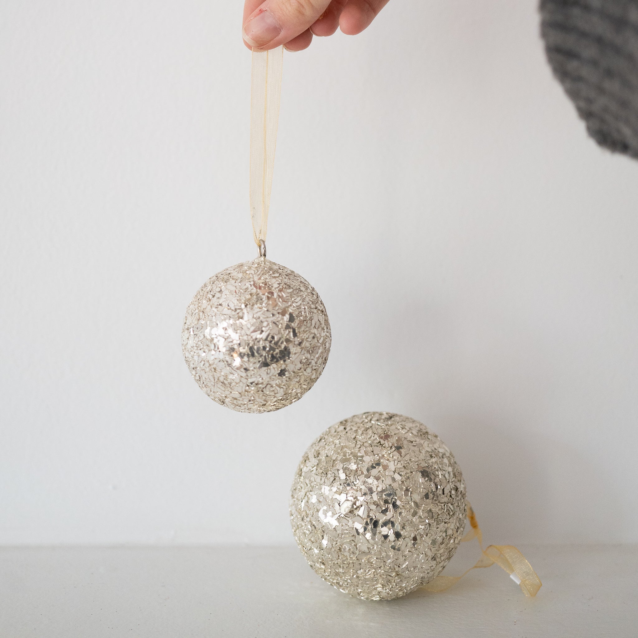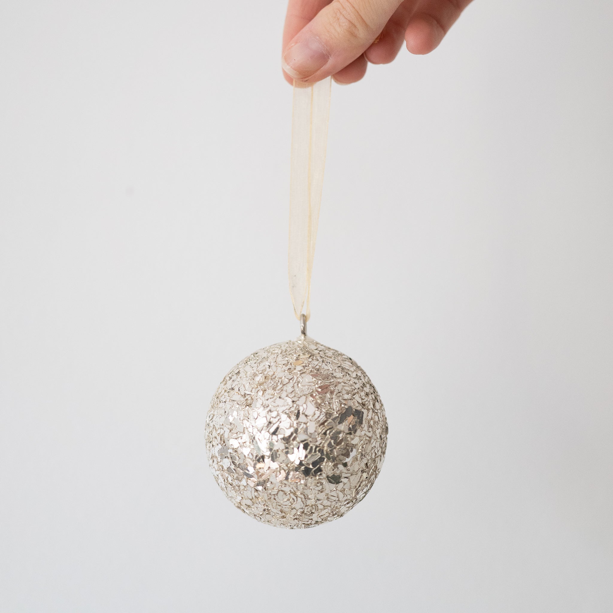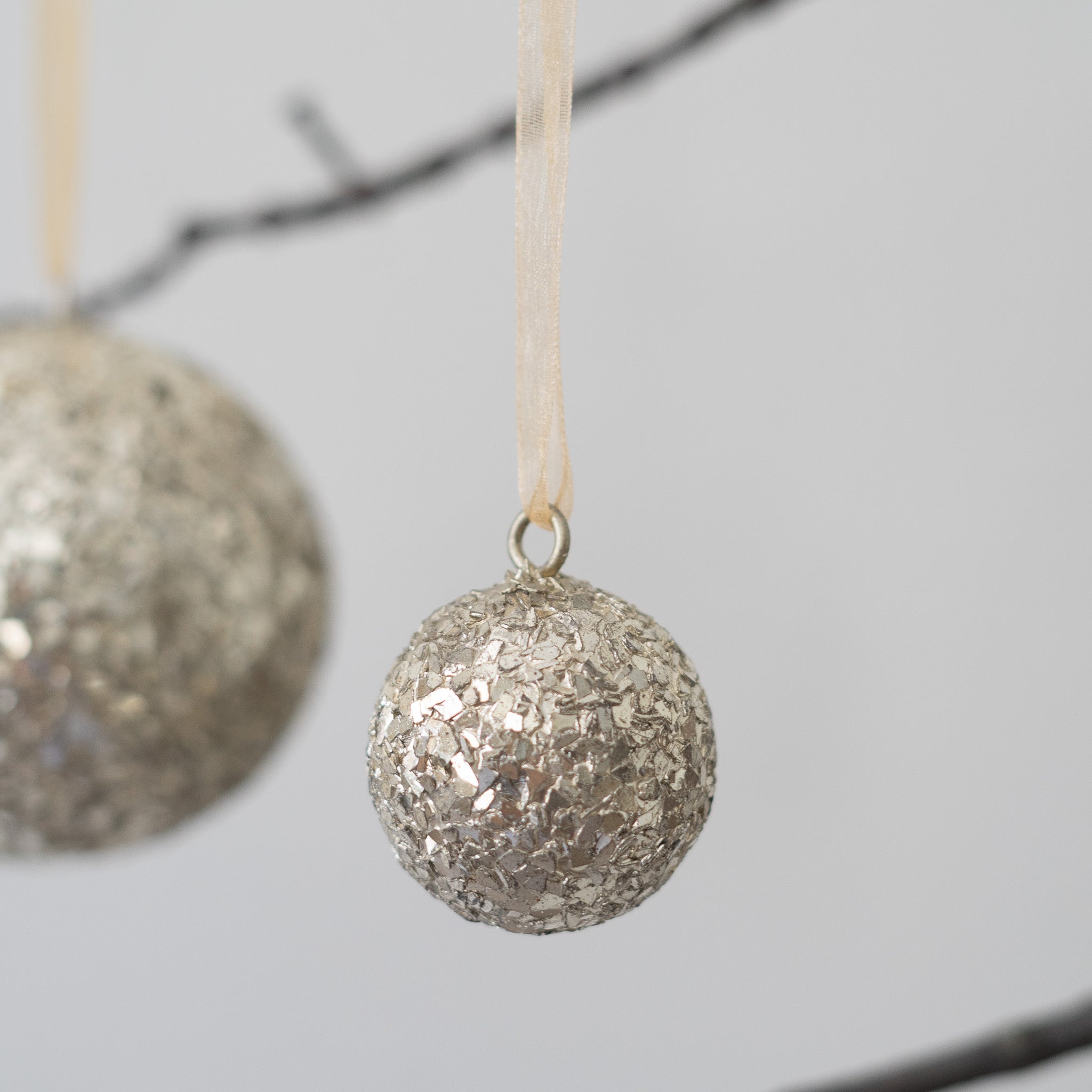 Glass glitter metal ball ornament, light gold