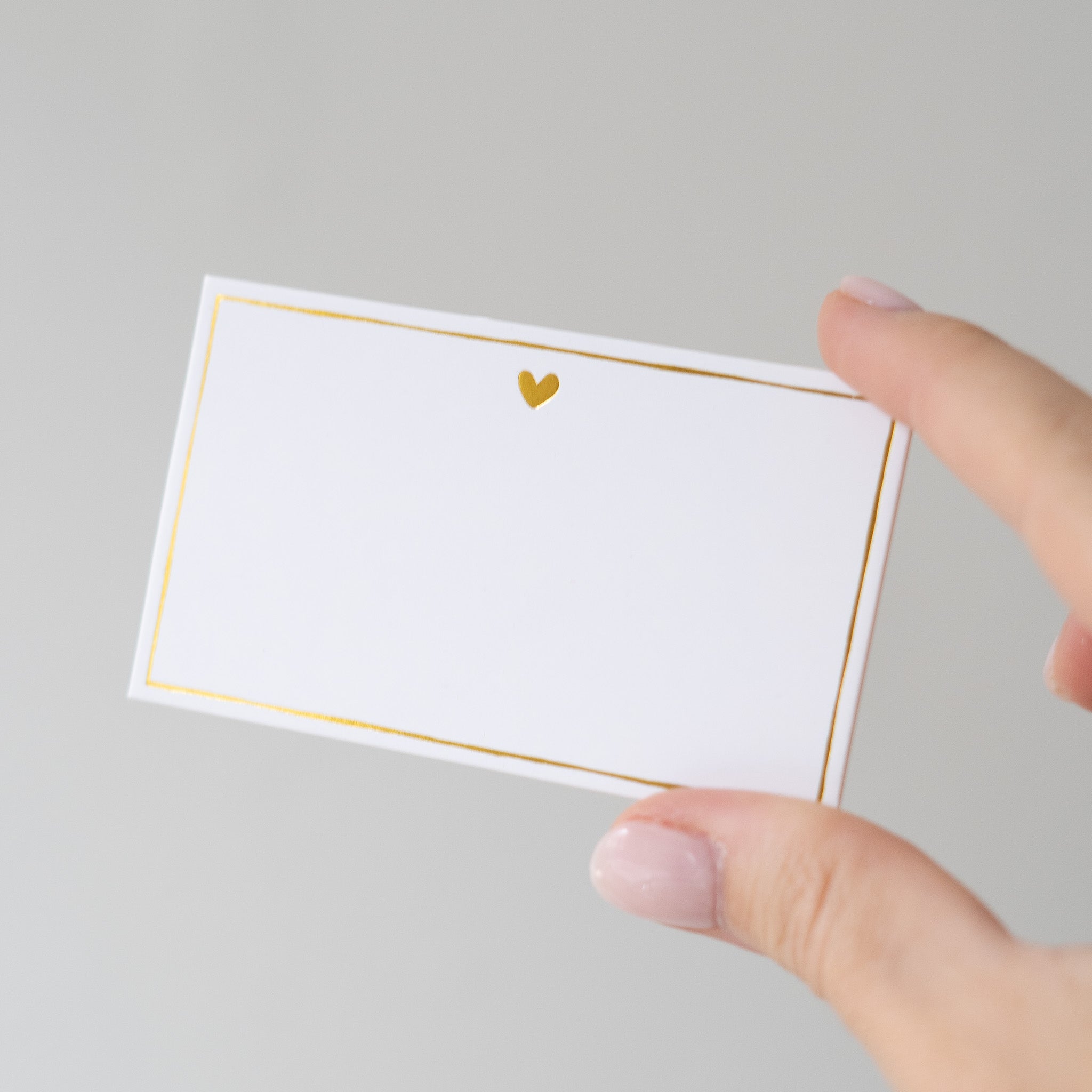 Set the scene with this playful set of 36 tree-shaped placecards, each adorned with charming gold heart details.