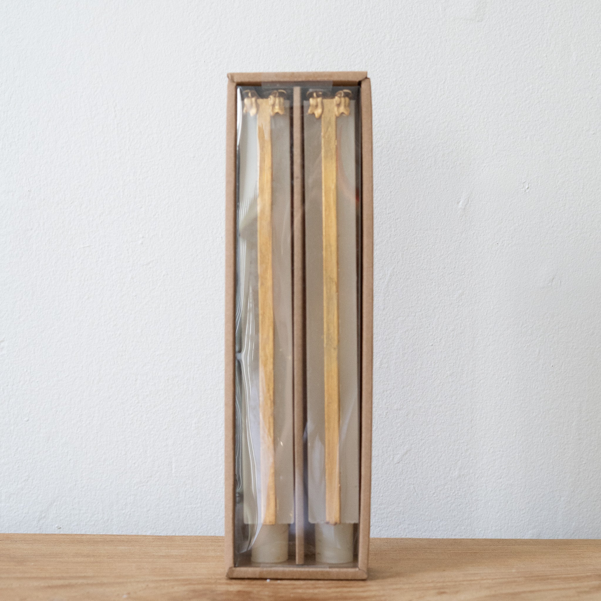 10"H Unscented Package Shaped Taper Candles in Box, Cream & Gold Color, Set of 2 (Est. Burn Time 15 Hours)