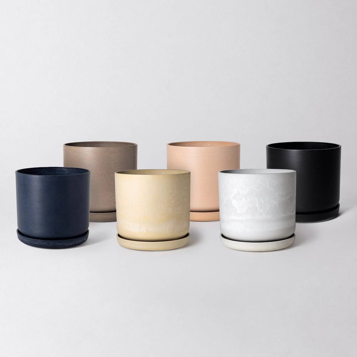 These planters offer a modern update to the traditional earthy tones. Elevate your aesthetic, and add a unique contrast to your plant collection. 9” planter pots come in 3 different colorways. Each set comes with 1 planter with a drainage hole, plug, and 1 matching saucer.