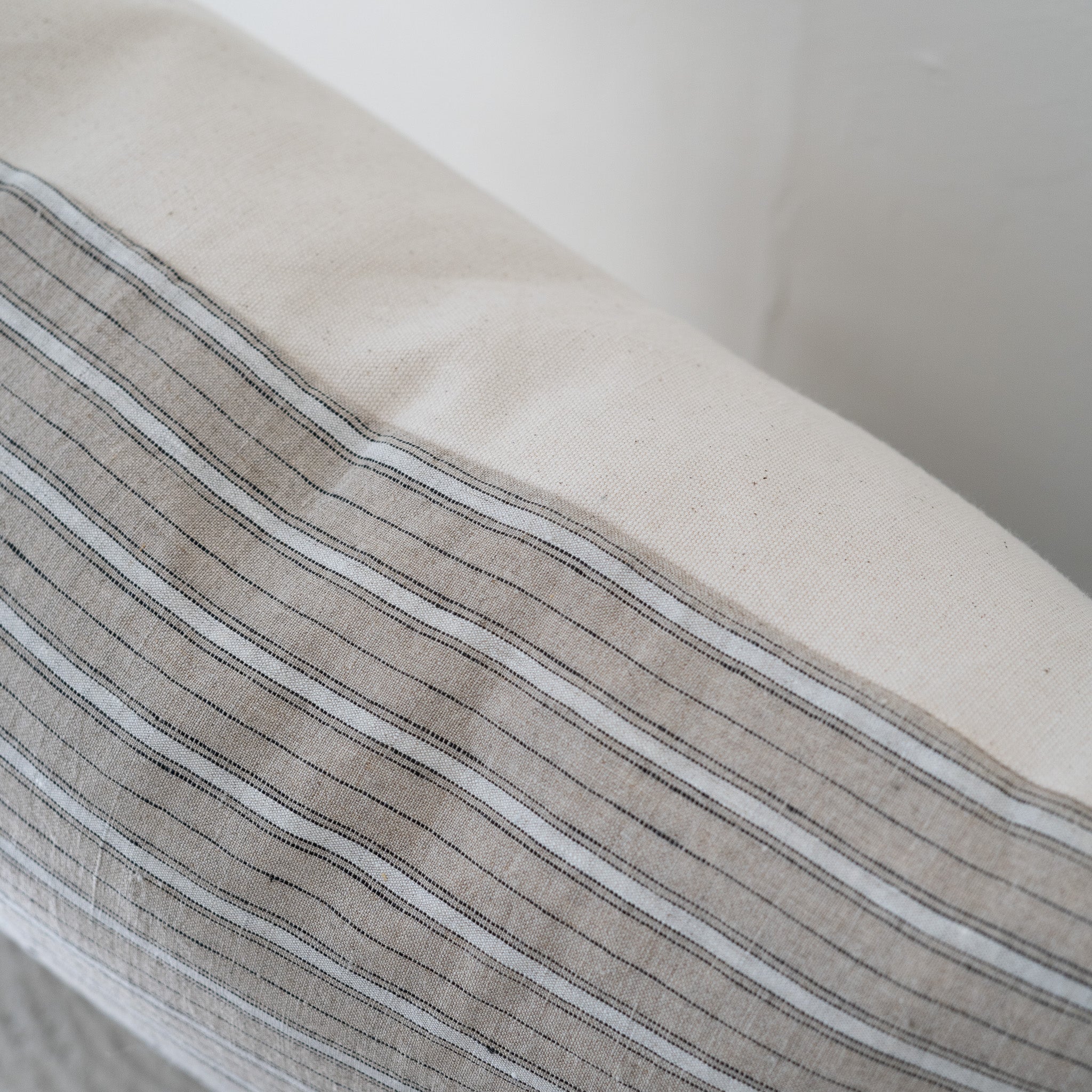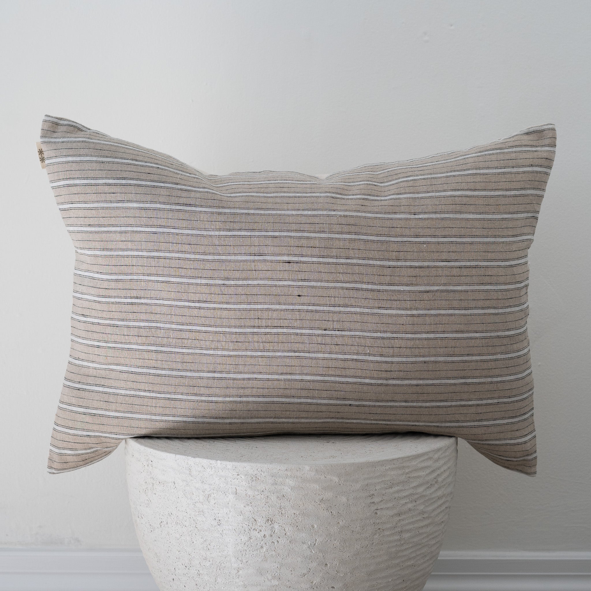 Elevate your home decor with the Brighton Stripe Pillow. Timeless stripes on a textured linen blend front and a solid cotton weave back provide a luxurious touch. Enjoy ethical practices and premium design with a Responsible Down Standard (RDS) certified feather/down filler included. Hand wash recommended.