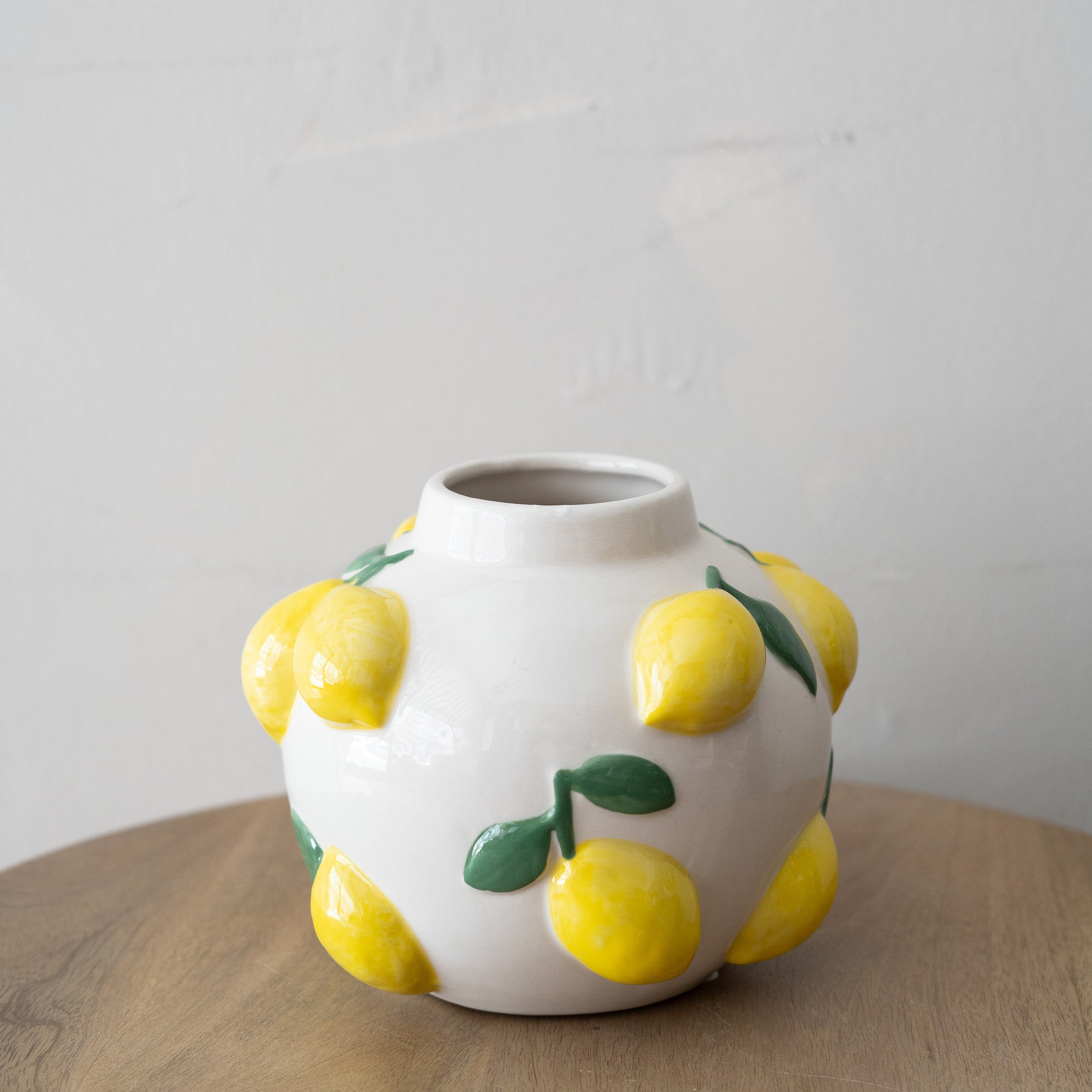 This playful vase is adorned with a lively lemons design. Overflowing with the joyful scent of citrus, it brings a burst of color and a sprinkle of quirkiness to any space, ideal for perking up rooms!