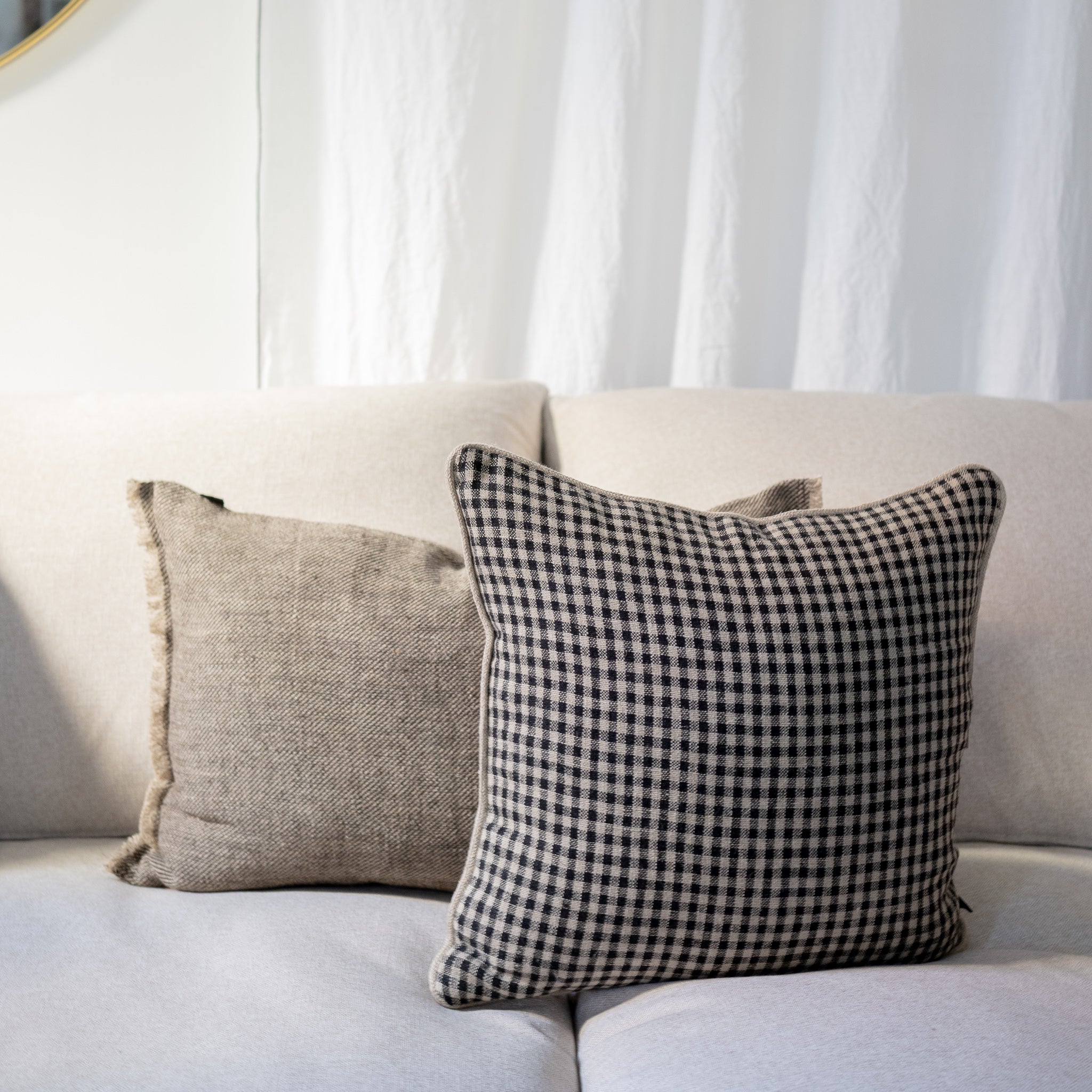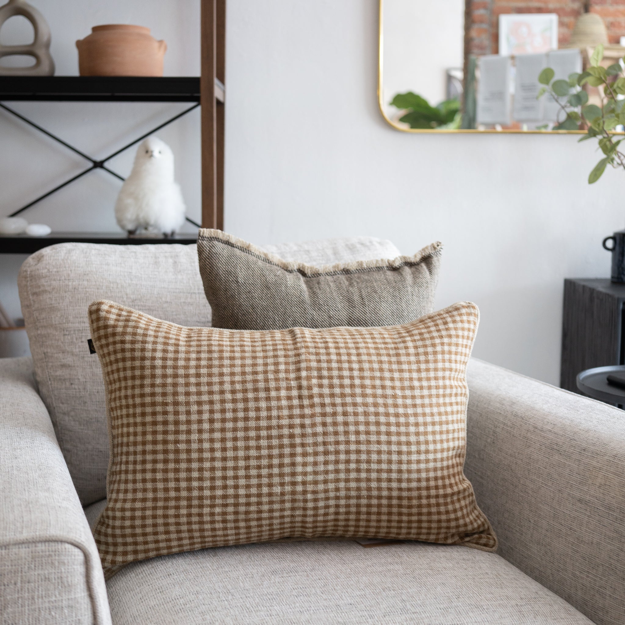 Introducing the Piana Linen Decorative Pillow! This beautiful pillow exudes effortless style with its linen gingham pattern in oat colour. Add warmth and charm to any living room with this timeless and inviting piece.