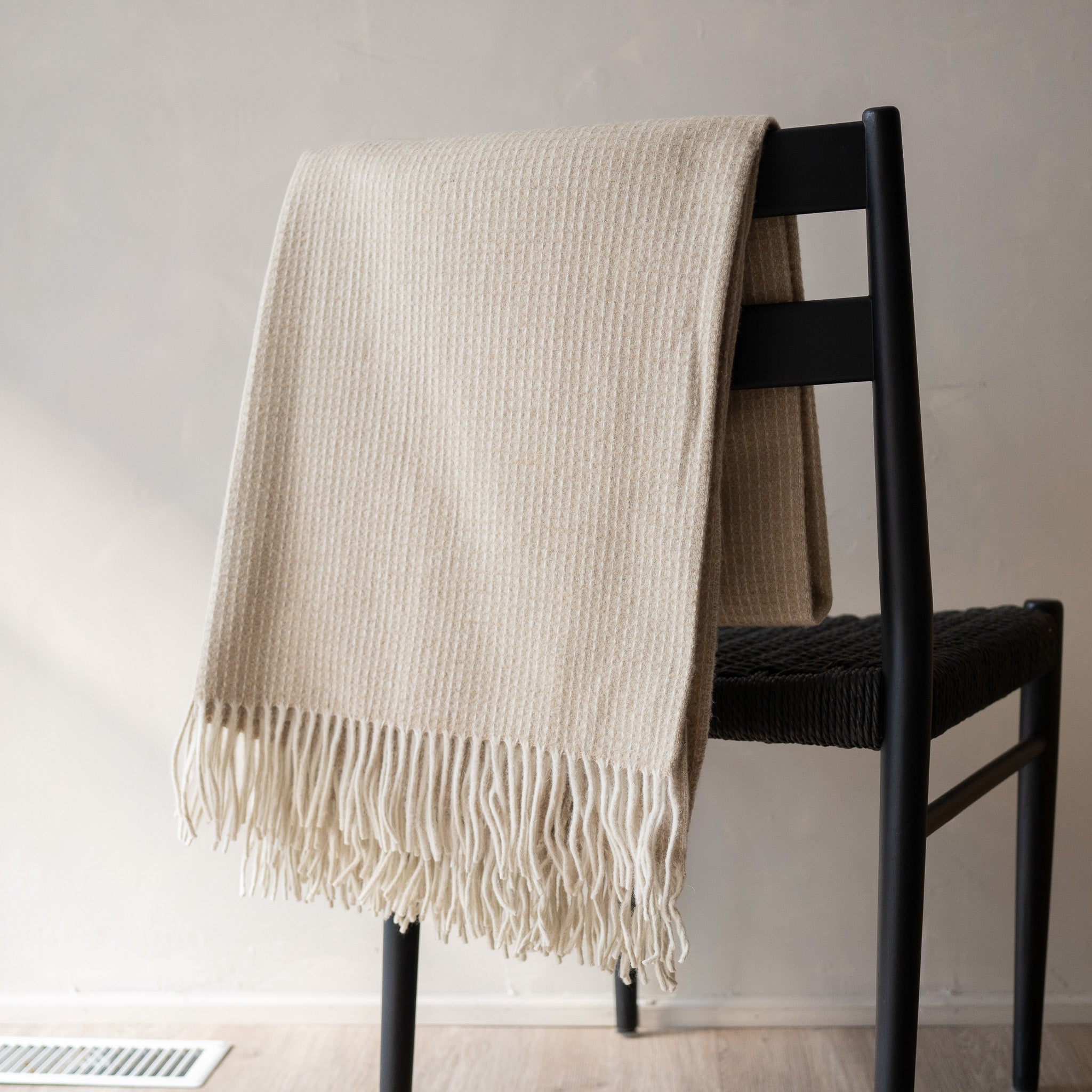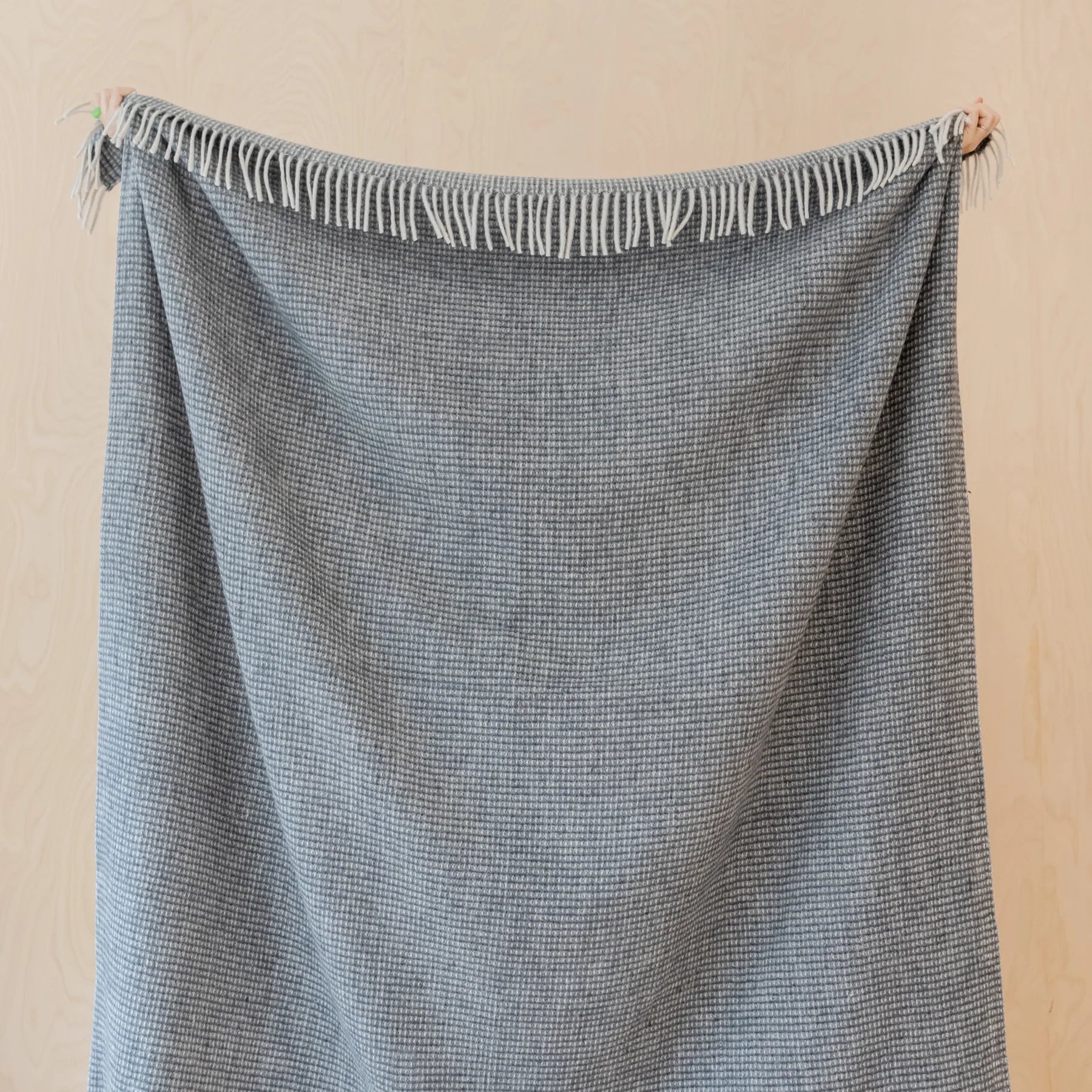 Woven from 70% Recycled Wool, 30% Mixed Recycled Fibres. Recycling wool can be a challenge as the fibres can be too short to respin. Our solution is to blend recycled wool with longer mixed fibres saved from landfill to create a soft and durable yarn, which is woven in a dense twill weave and brushed for texture. All the benefits of wool, in a sustainable blanket!