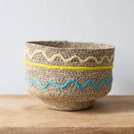 Richly woven seagrass forms this versatile basket with vibrant stripes, adding an element of the unexpected. Natural texture and bold colors offer a timeless balance of function and beauty.