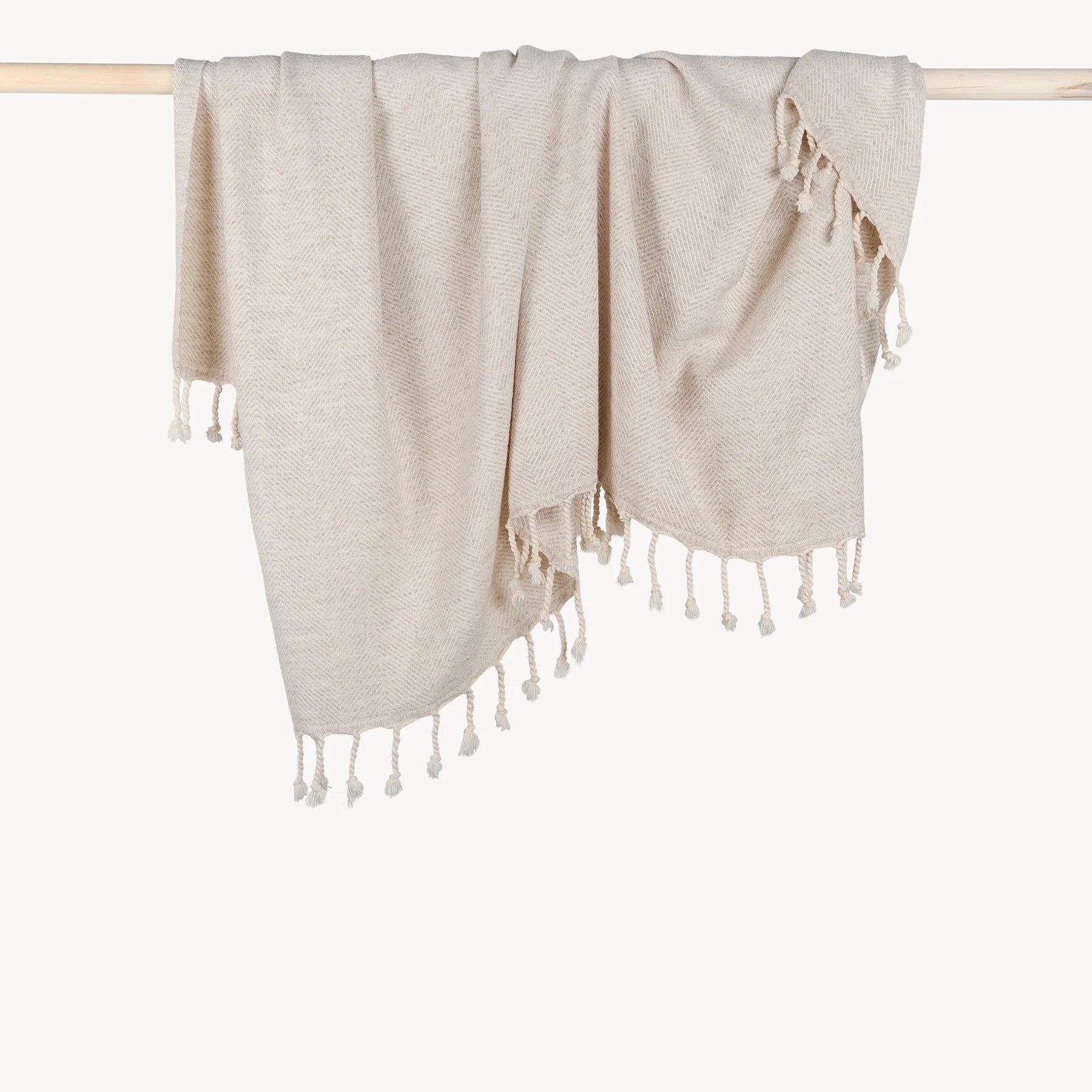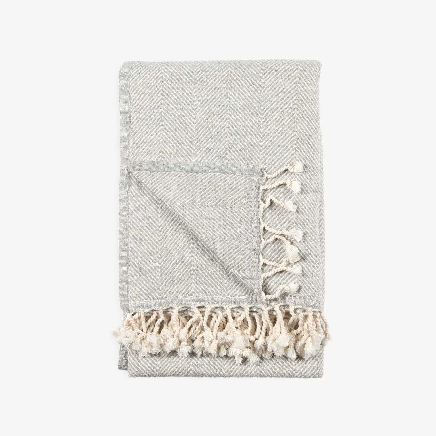 This luxe, herringbone-patterned throw is a lambswool and cotton blend, finished with traditional, hand-twisted Turkish tassels. It is an ultra-soft hand feel and medium weight. Use this stunner to elevate your bedroom, living room, nursery, and patio. Lambswool is an incredibly soft, non-itchy, and high-quality wool.