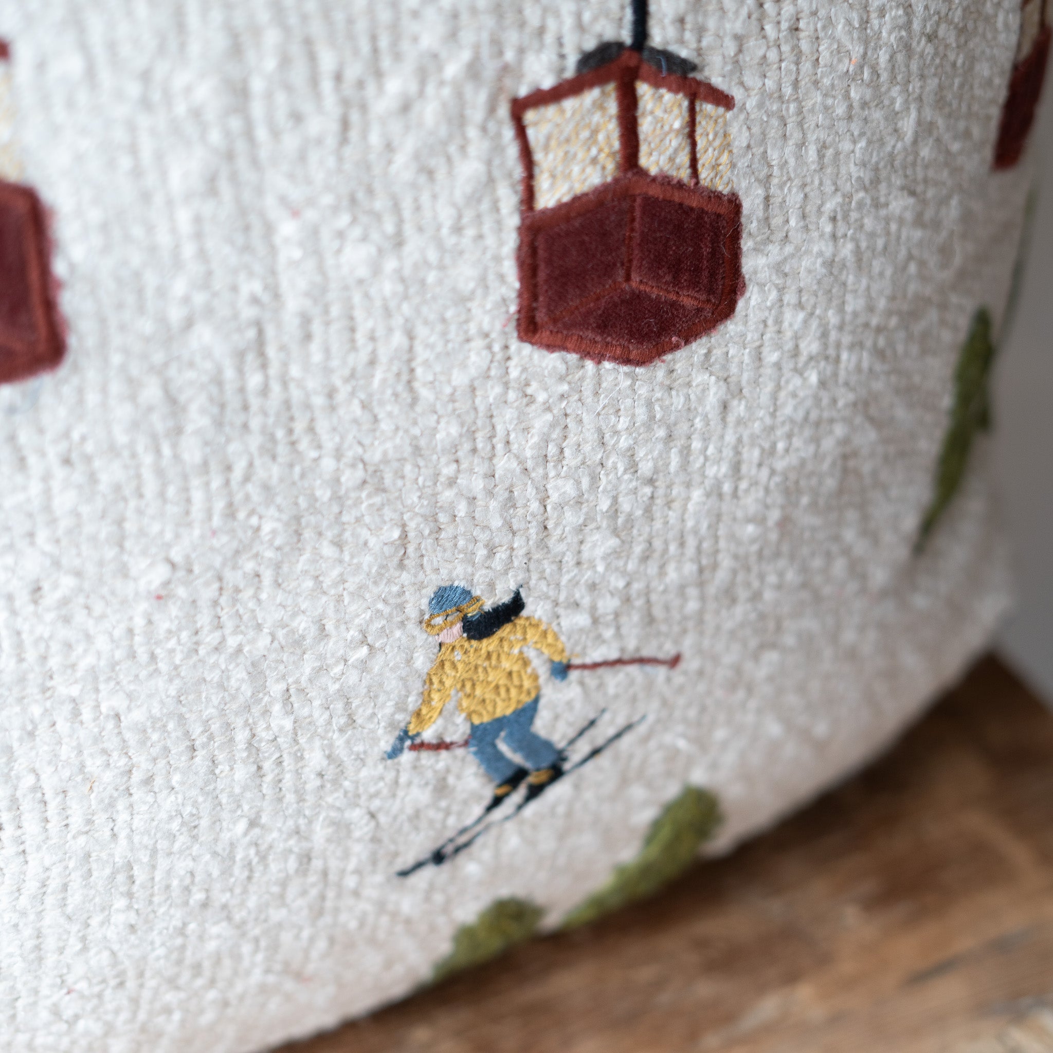 Ski Scene Boucle Pillow
