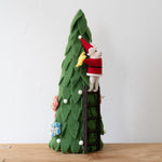 Felt mouse in Santa suit climbing a green felt Christmas tree decorated with presents and a star, 14 in.