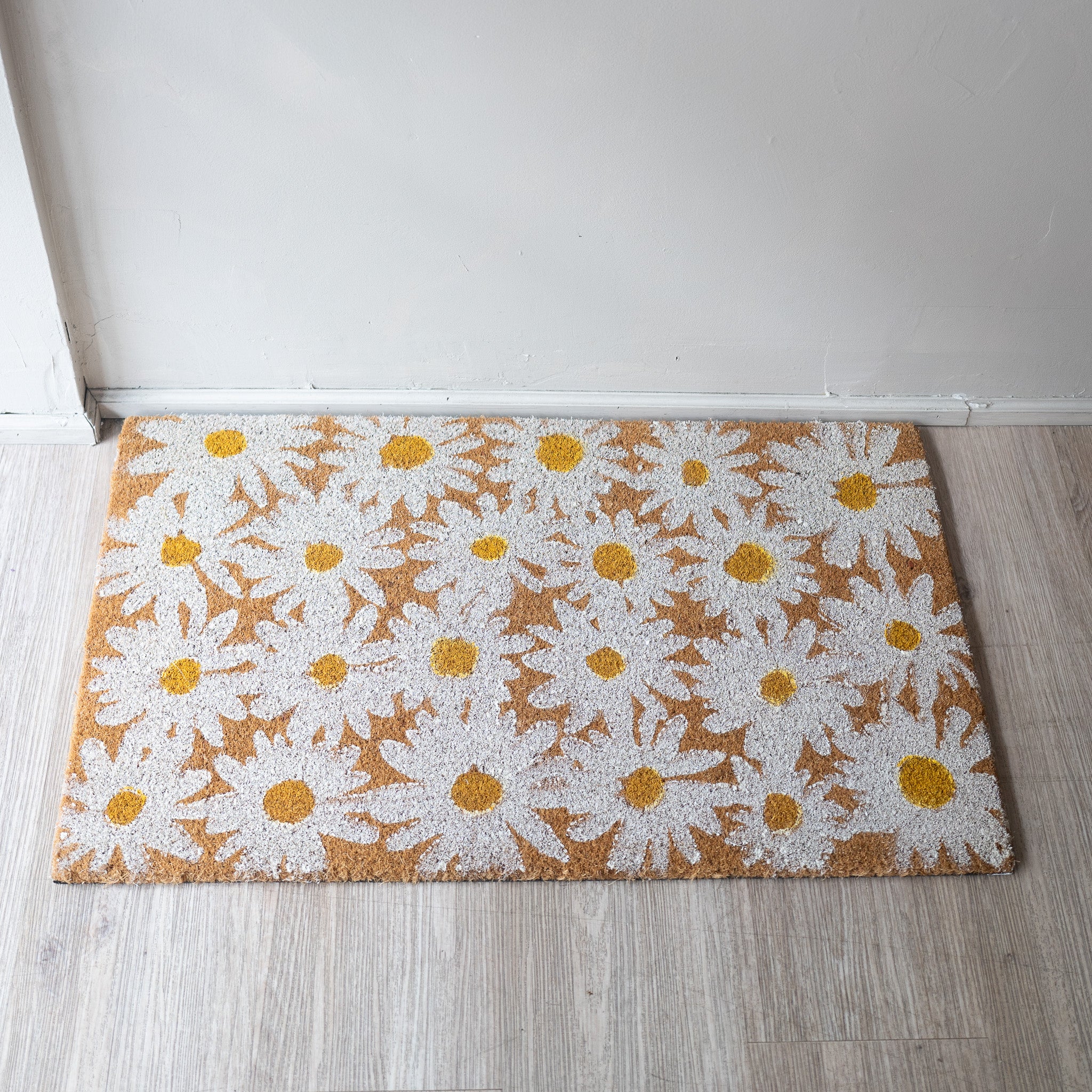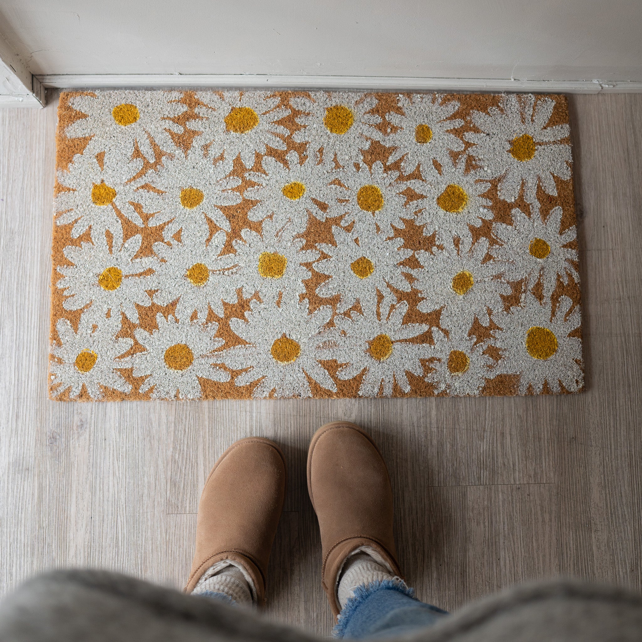 Bring a bit of spring to any entranceway with this All Over Daisy Doormat. Crafted out of durable coir fibre and PVC to withstand even the worst of winter weather, this natural-coloured doormat features an array of blooming white and yellow daisies for an enchanting way to welcome all your houseguests.