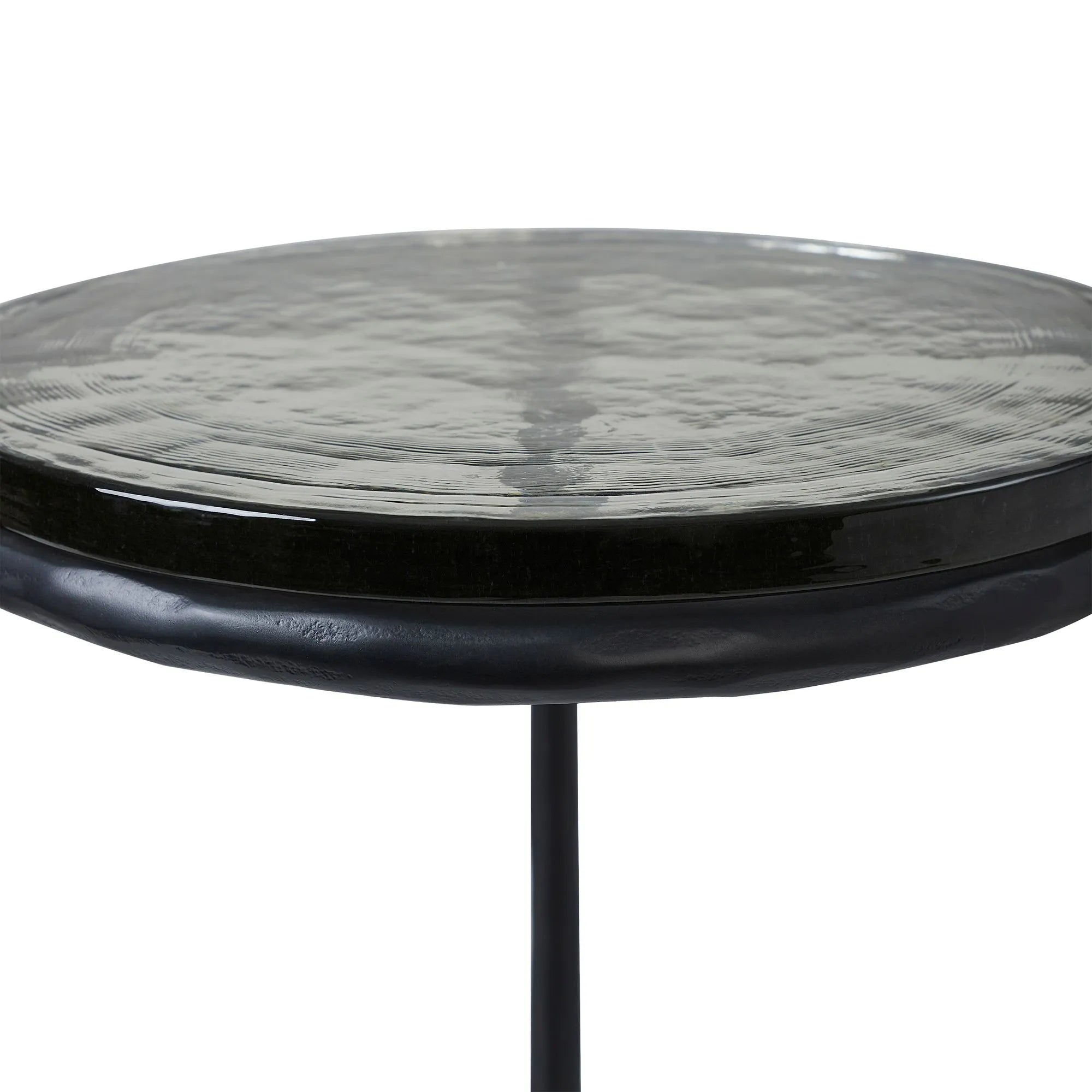 Decorate any room with ease using the Avila side table. This stunning accent end table features clean lines, classic materials, and a sleek recycled tinted glass tabletop. Its three-legged design provides stability while maintaining a stylish, airy feel. Perfect for any interior style, whether you're starting from scratch or just adding a fresh touch.
