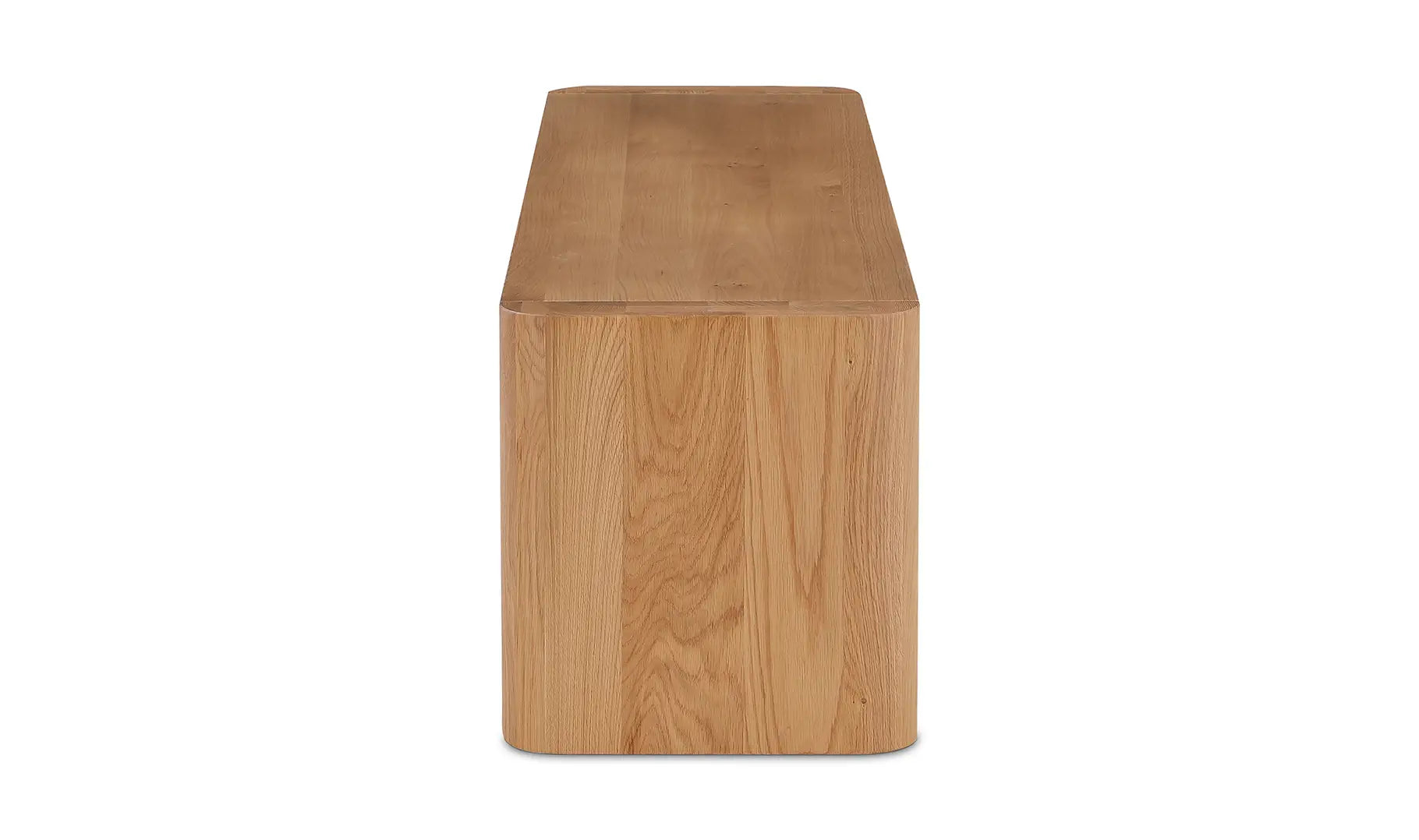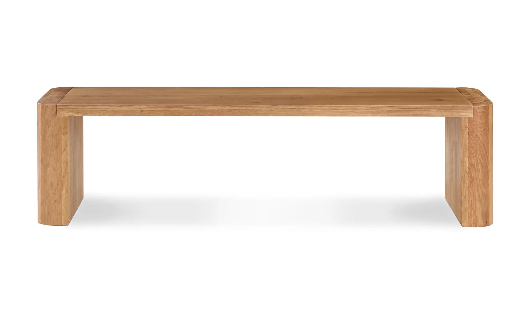 Well-rounded and honest, the Post dining bench's gentle geometries come alive with each dining experience. Available in two sizes, this sweet bench series showcases the rounded posts on each of its four corners, a rhythmic play on a familiar design where warmth and peacefulness come together in a stately, distinguished look. A natural beauty in solid white oak with a natural finish, this dining table shows off oak's beautiful grain patterning and shades. Post is the perfect perch for meals to come surrounded by natural, sculpted elements.