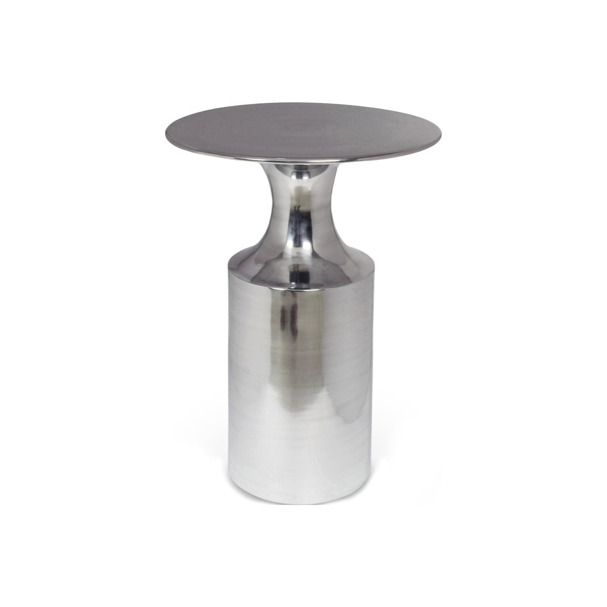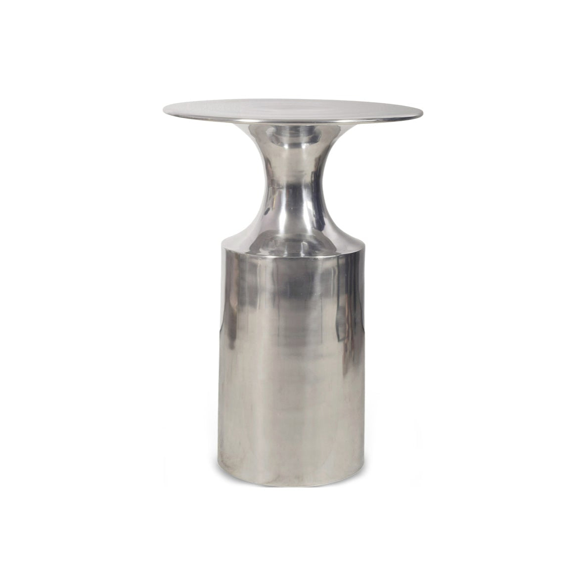 Burnished with a polished finish, the Rassa accent table features Art Deco references with a slender column base that dips to flare out to a metallic, reflective tabletop. The slim form makes it easy to move around and flex to changing needs, while the base features a felt disc to prevent scuffing the floor. Available in polished silver, gold and zinc, this aluminum table’s magnetic charm makes a statement in any space.