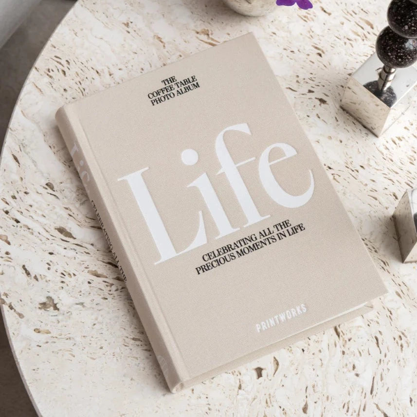 This neutral-colored coffee table photo book reminds you more of a hardcover art book than a traditional photo album. When closed it looks just like an elegant coffee table book but when opened it's filled with 80 off-white pages of high-quality photo paper. With its clean and elegant design, it will enhance every room you decide to place it in. A perfect place to store your pictures and precious moments in life. The photo book measures 28x19,5x3,5 cm. It includes 80 off-white pages of 150 gsm paper, and fits 160 horizontal placed photos with a maximum dimension of 11 x 15 cm.