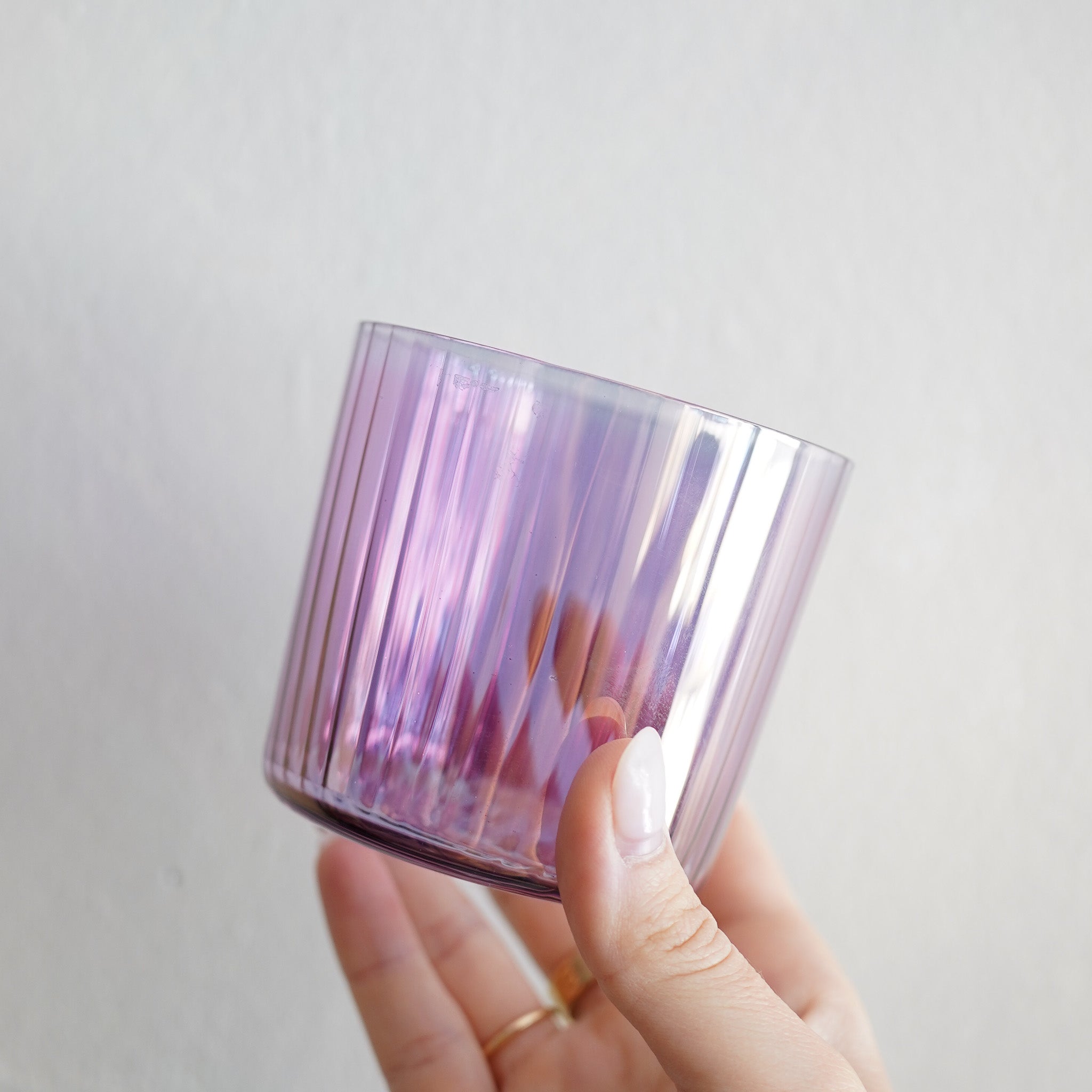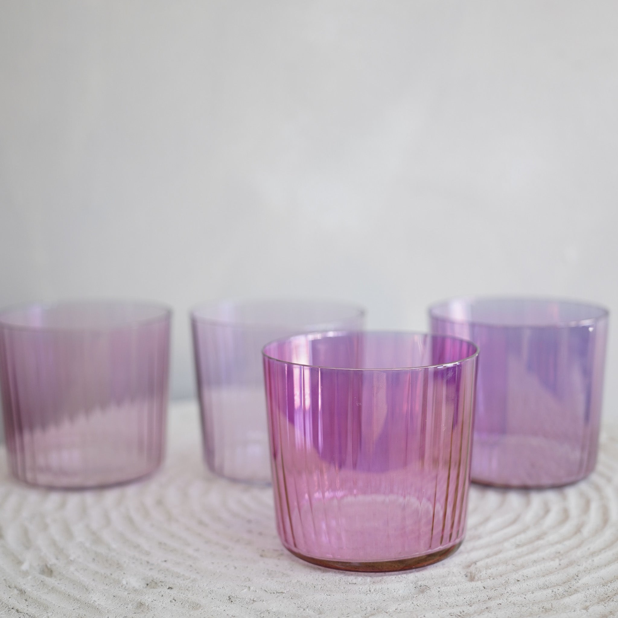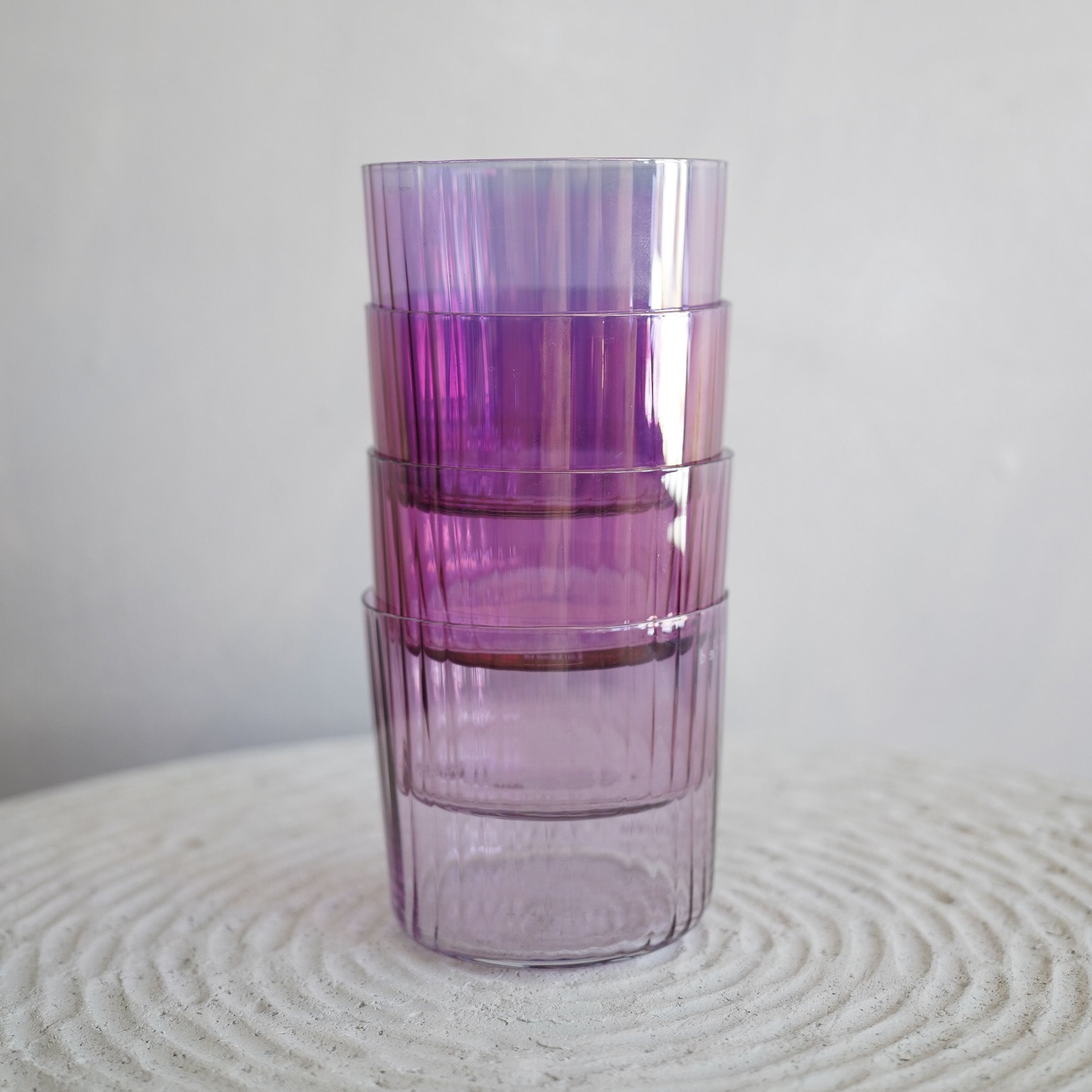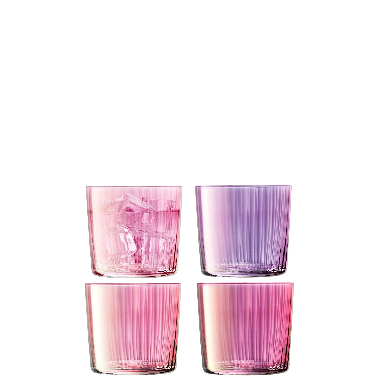 - Iridescent jewel-tone colours combine with the pleated texture in the glass to mimic the facets of polished gemstones.
