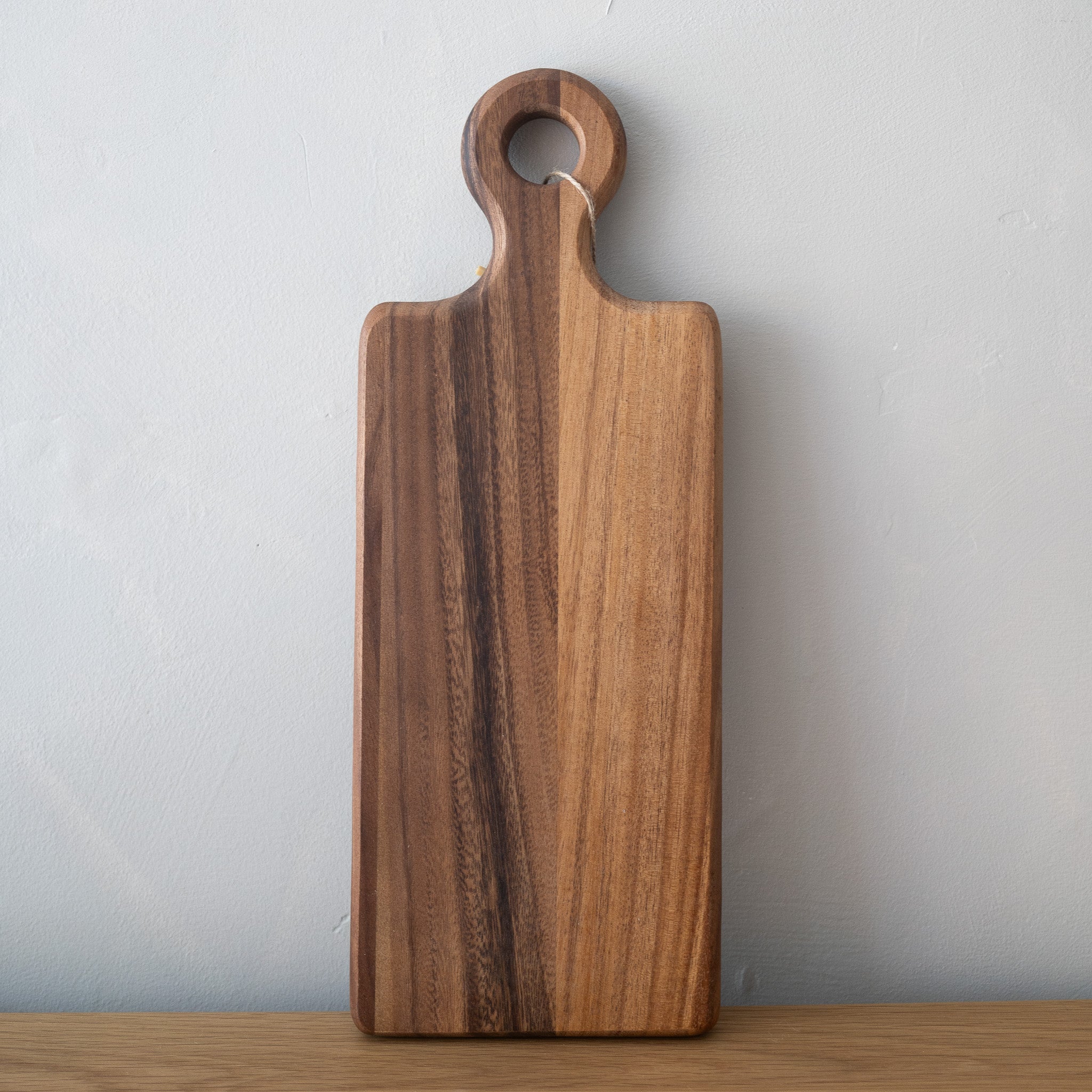 Bring a natural, rustic element to your entertaining with this handsome Paddle Board with Grooved Edges. Crafted out of acacia wood, this distinctive paddle-shaped serving board features a gorgeous wood grain finish that make it the perfect complement to your favourite selection of charcuterie, meats, cheeses and more.