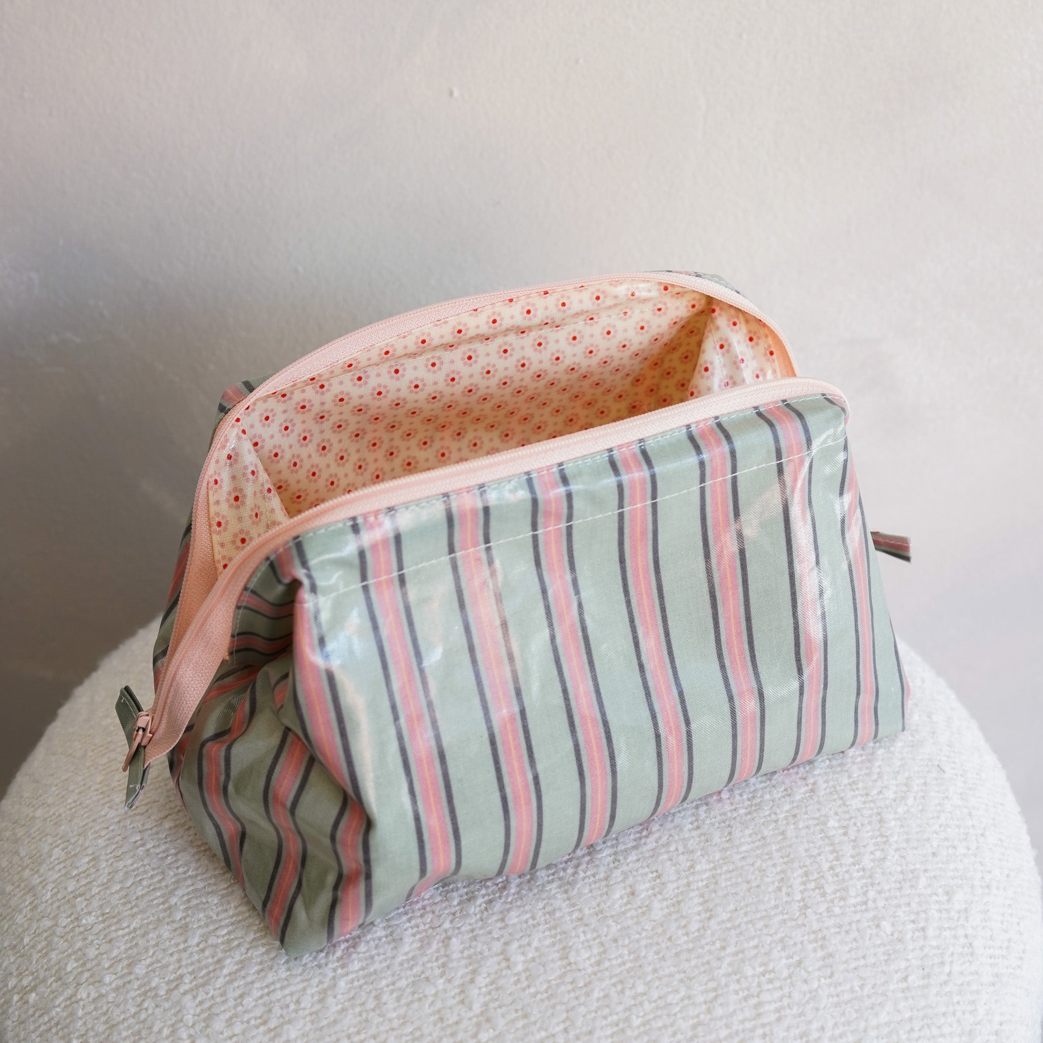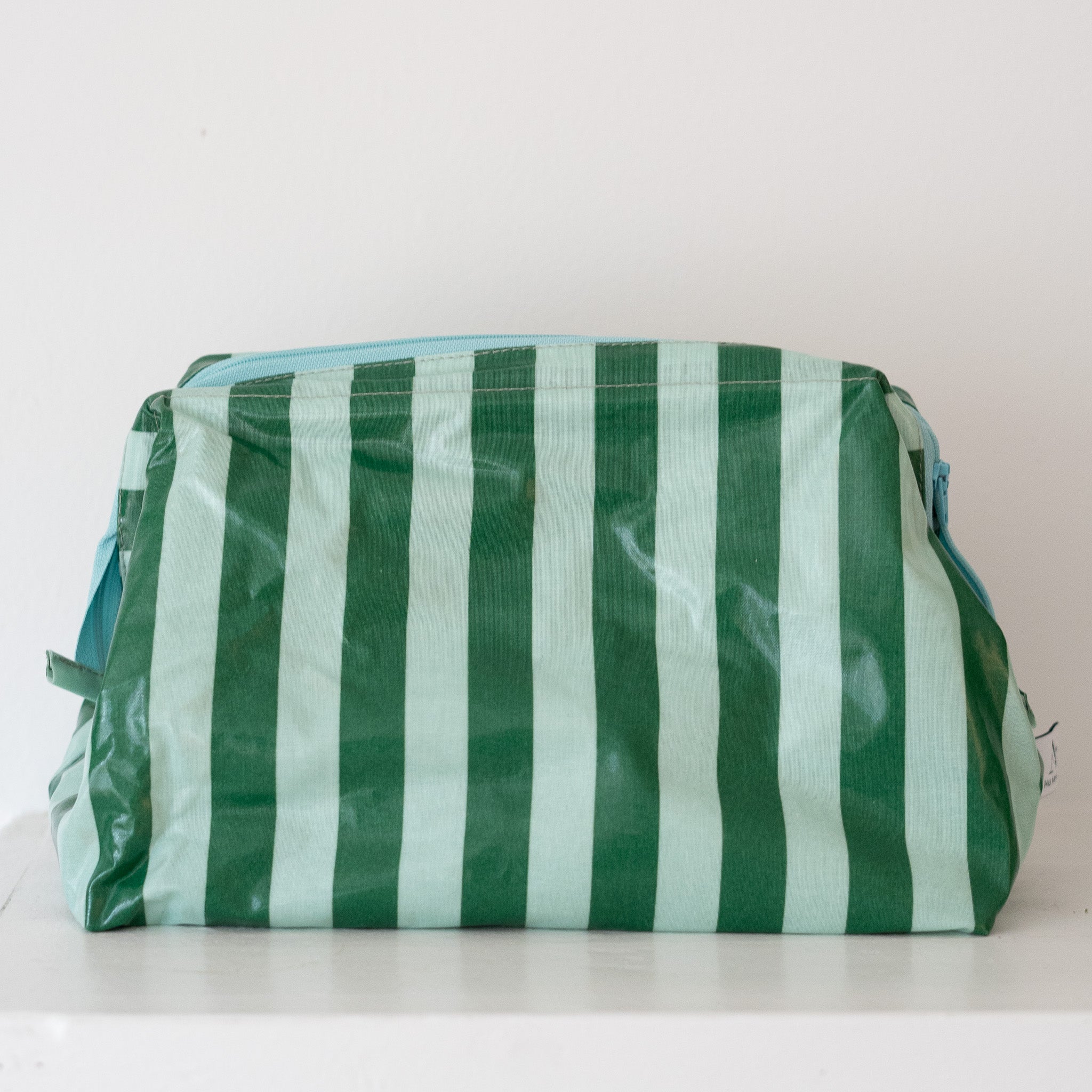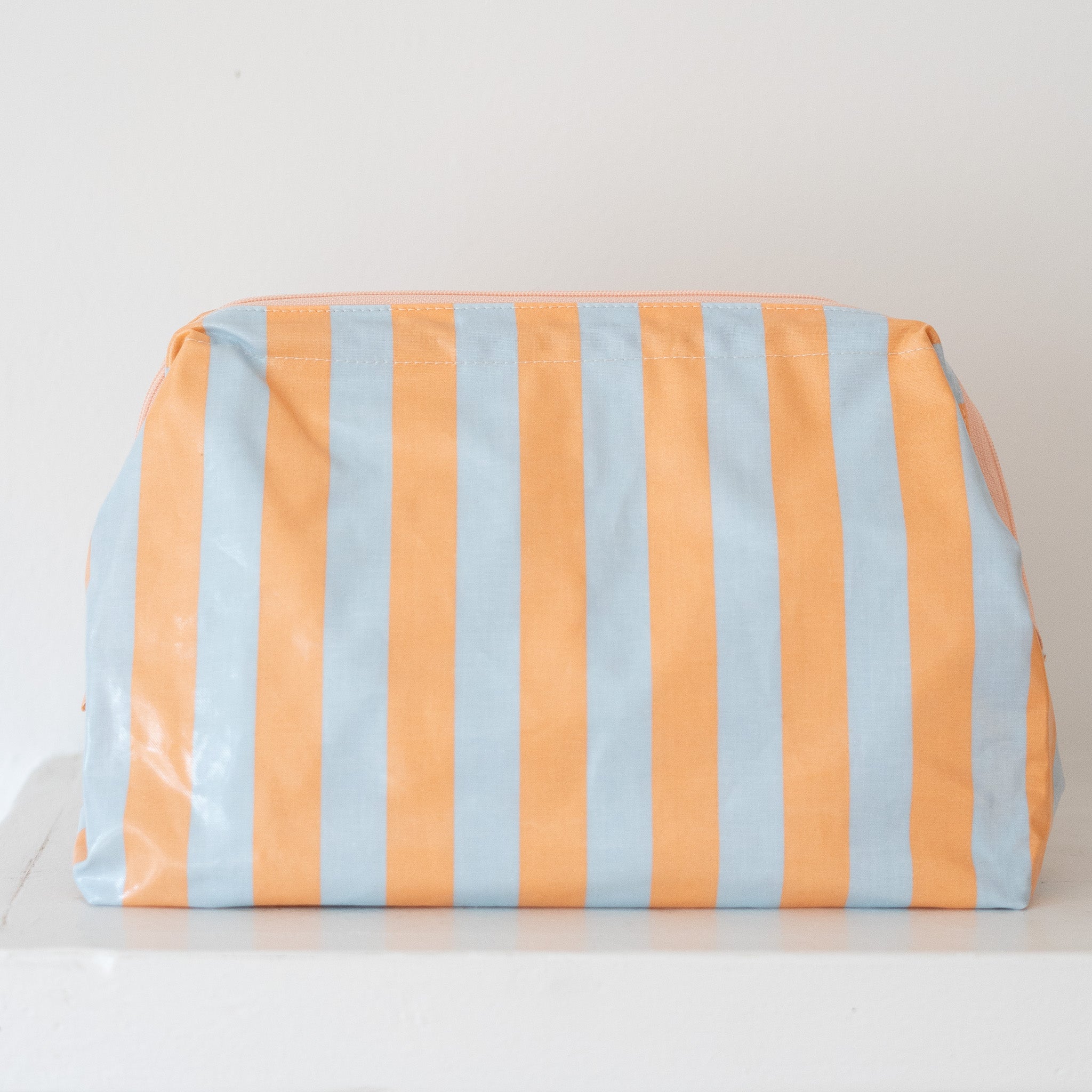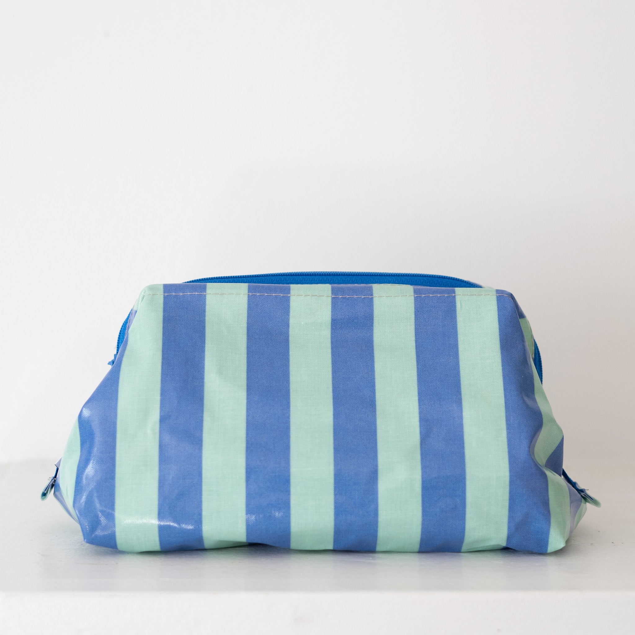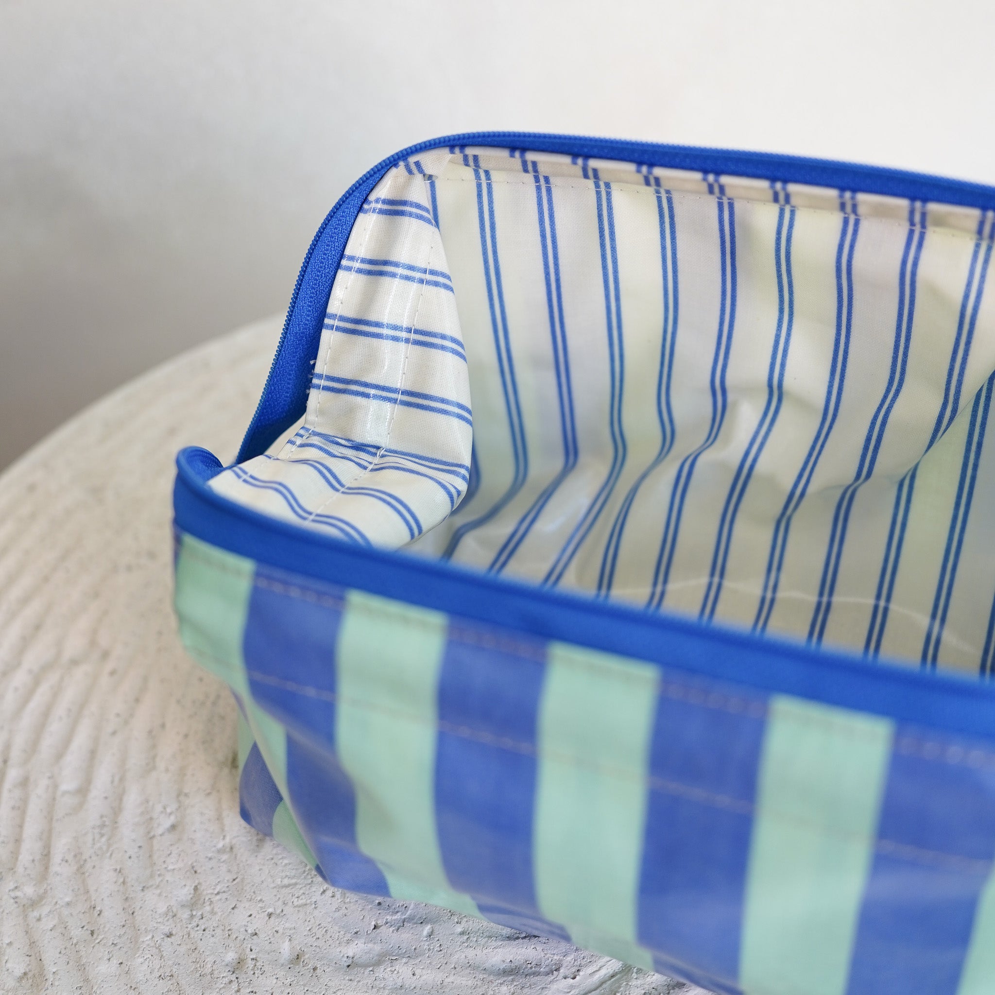 Travel with ease and organization with our Striped Toiletry Bag. Its waterproof design allows for easy cleaning, while its spacious opening makes it effortless to locate your essentials. Stay prepared on-the-go with this practical and generously sized pouch.