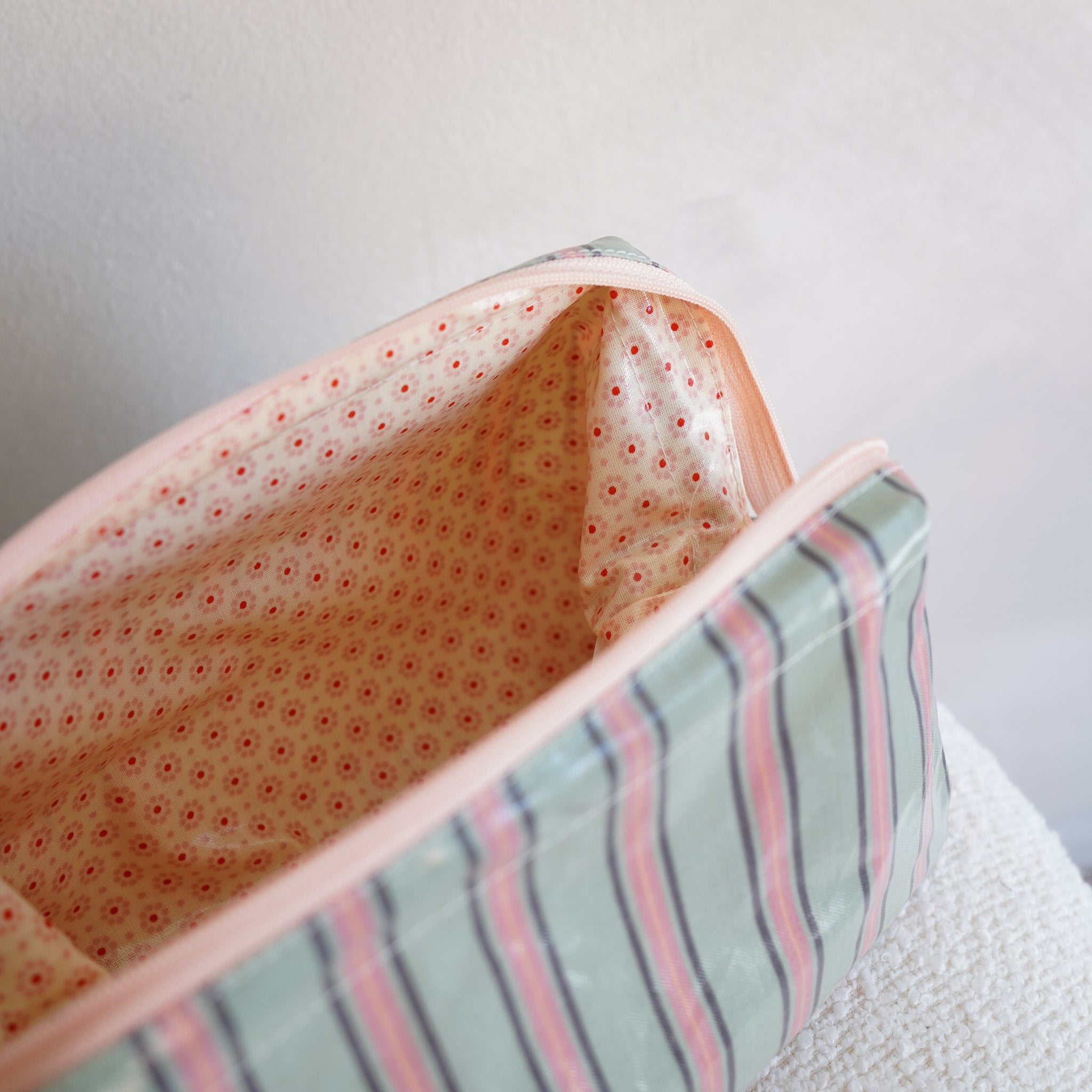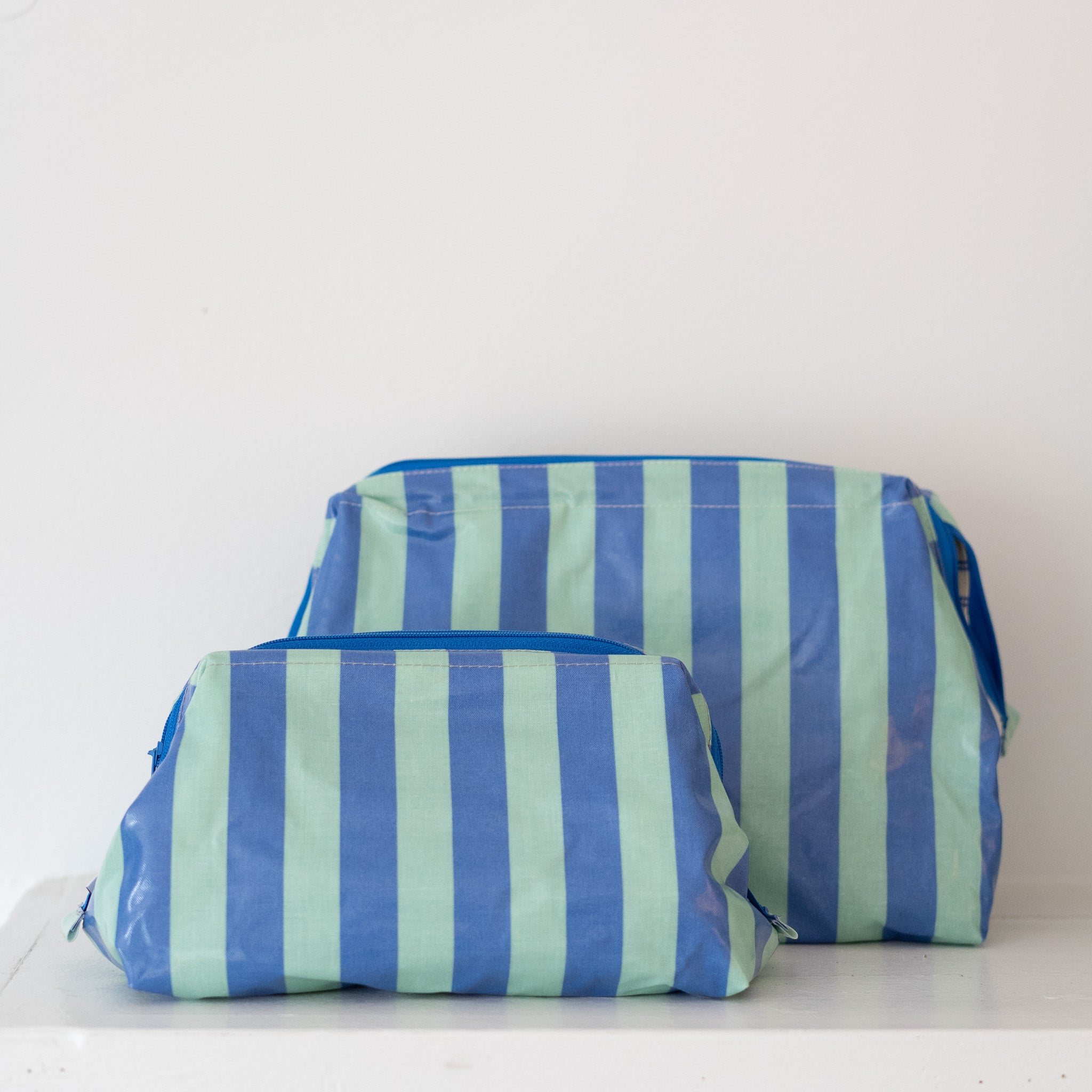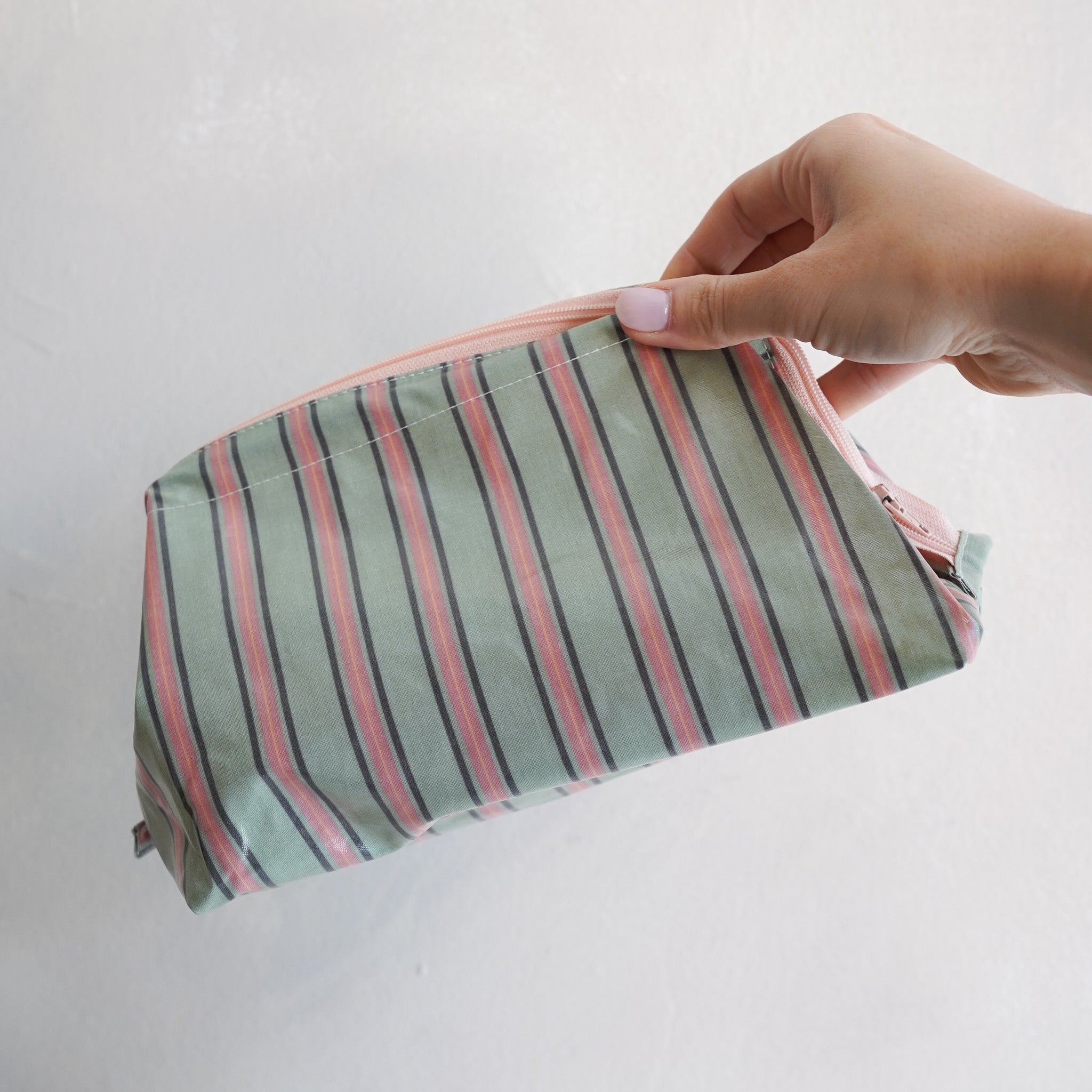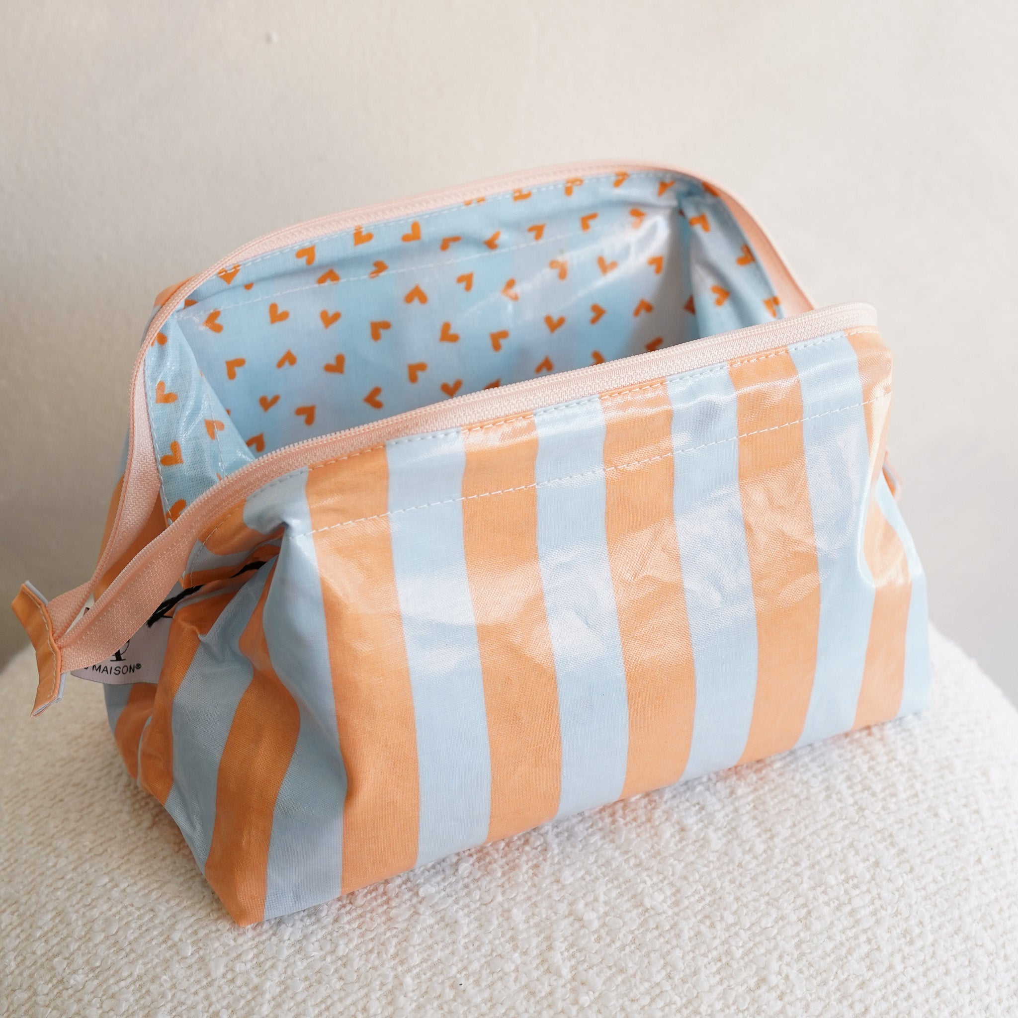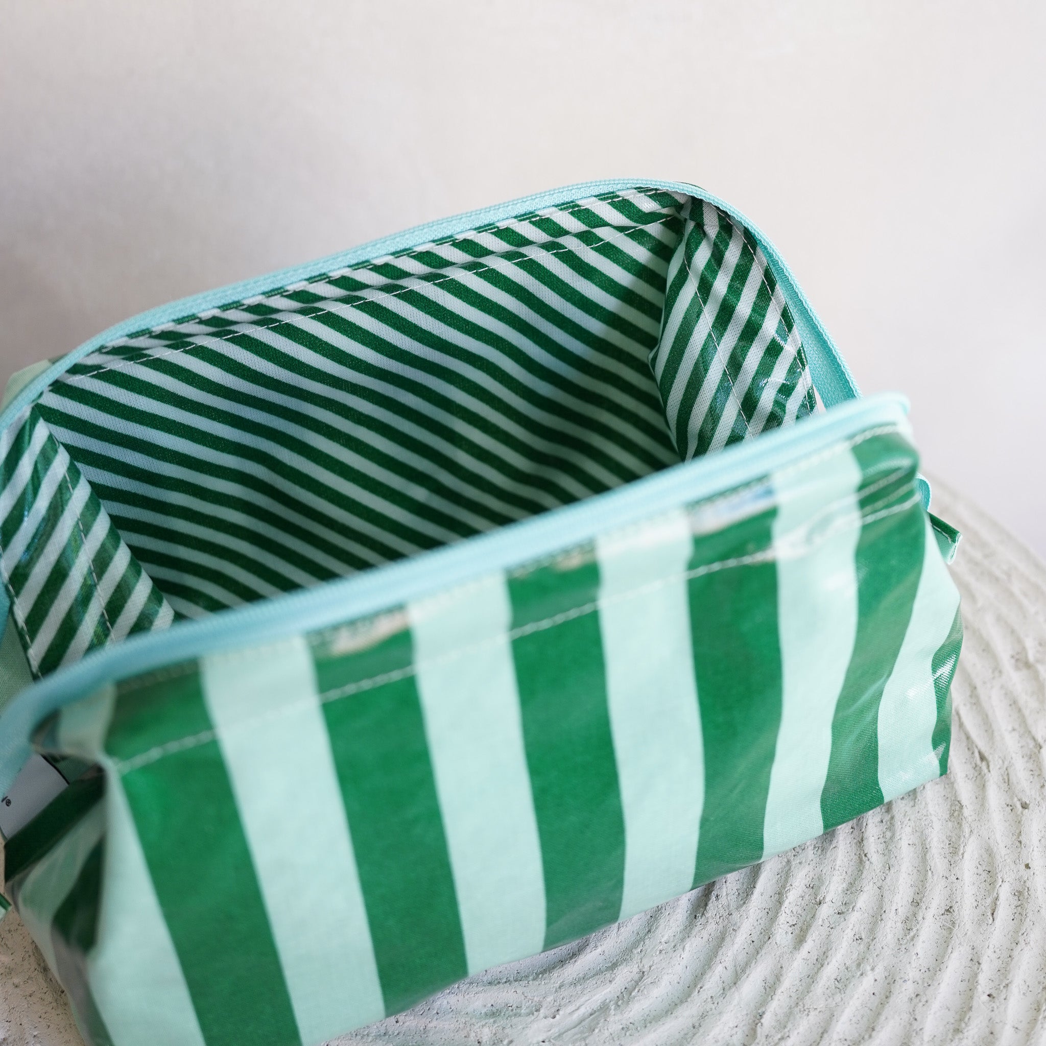 Travel with ease and organization with our Striped Toiletry Bag. Its waterproof design allows for easy cleaning, while its spacious opening makes it effortless to locate your essentials. Stay prepared on-the-go with this practical and generously sized pouch.