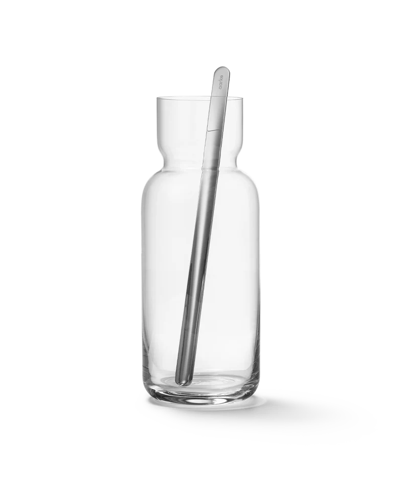 Our thin, crystal-glass carafe is paired with a sleek, stainless-steel cocktail mixing spoon. By combining durable materials and sophisticated design, we’ve created a duo that is ready to upgrade your kitchenware, home bar, and dinner table for years to come. Ideal for everyday refreshments.