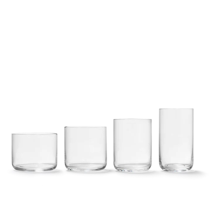 They all have different diameters and heights while sharing the same 290 ml (9.8 fl. oz.) volume, creating a playful juxtaposition between individuality and coherency.