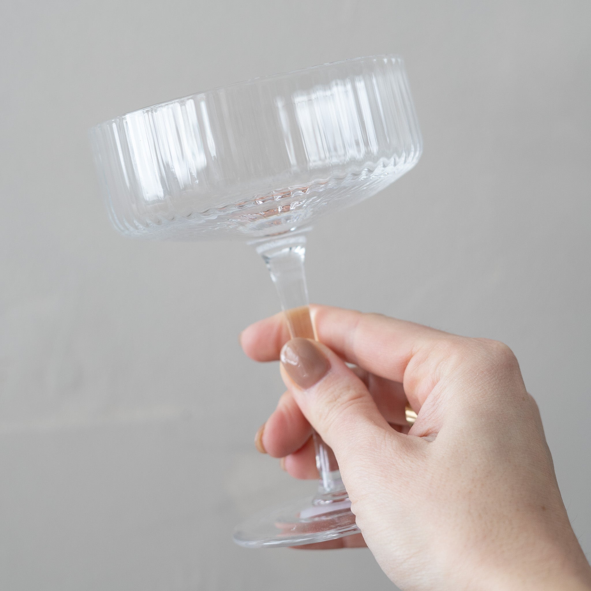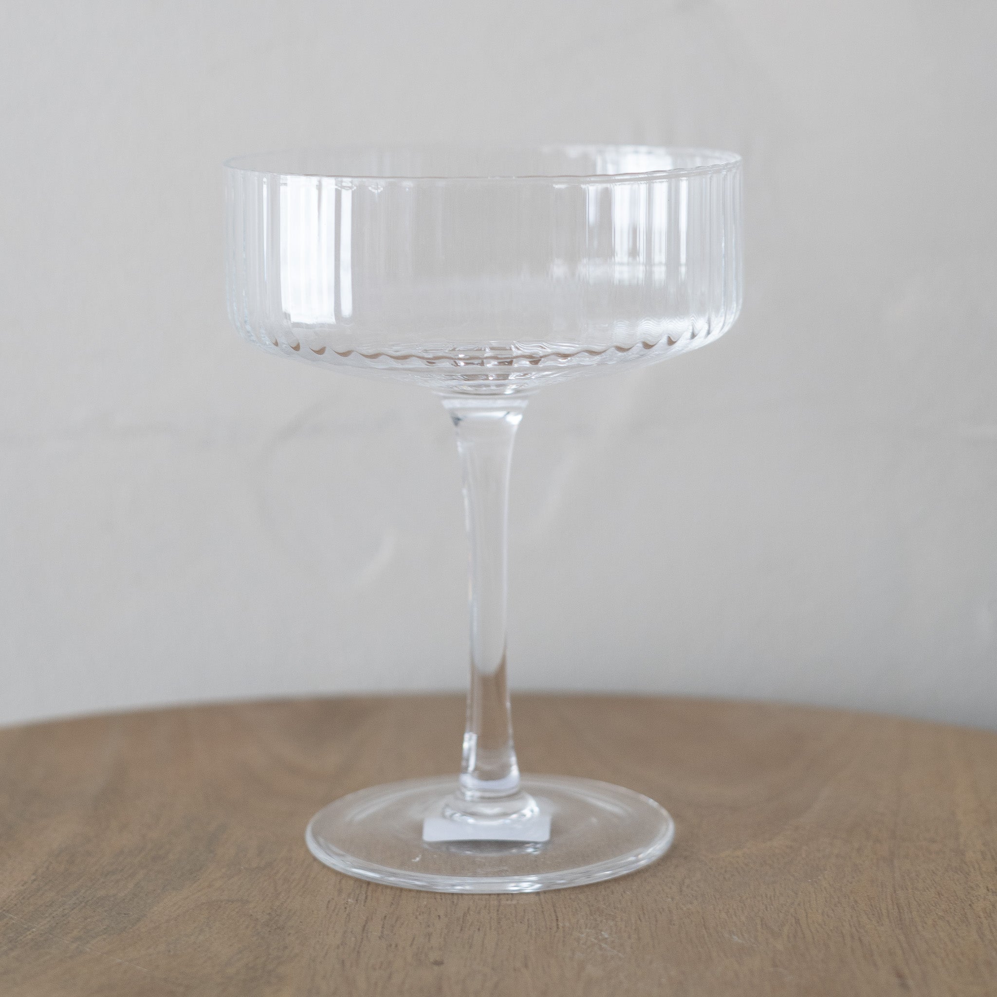 Upgrade your cocktail gathering with the Roma Ribbed Cocktail Coupe - a sleek optic glass adorned with intricate line detailing. It's the perfect star for any entertaining affair!