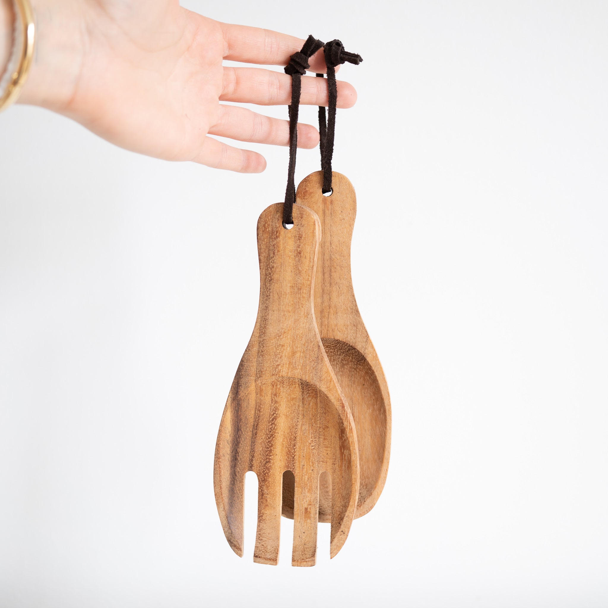 These beautiful acacia salad servers bring a natural yet modern touch to your kitchen and serving ware. The rich grain of the acacia wood, combined with an oil finish, enhances its natural warmth. A perfect touch to your seasonal salads. Care: Hand wash only.