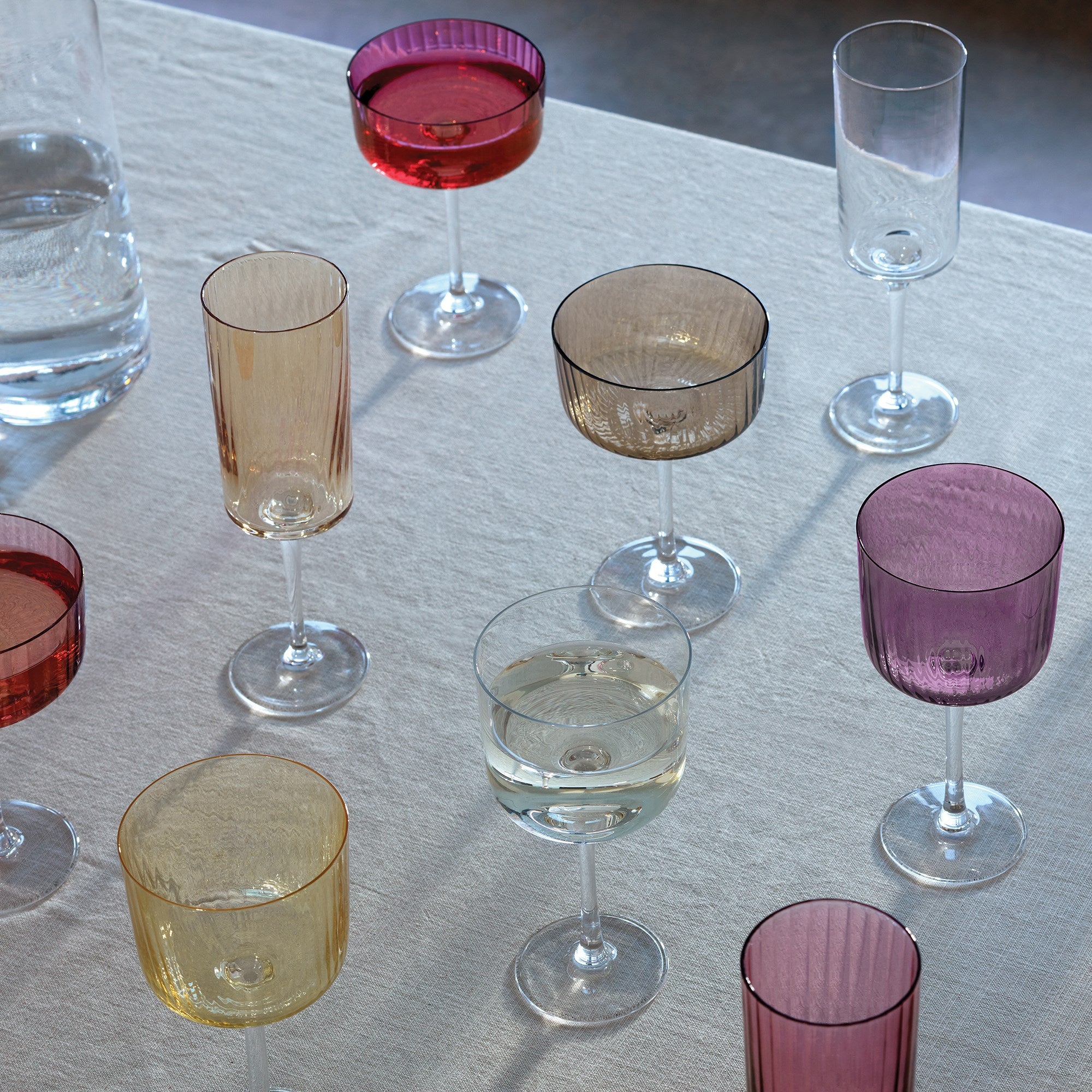 A collection of versatile, practical stemware designs with modern, simple forms. Machine made crystalline glass. Building on success of the Gems Line tumbler range, this stemware has cylinder shaped bowls on sturdy, shorter stems, and brings an elegant yet casual vibe to your wine & cocktail experience.
