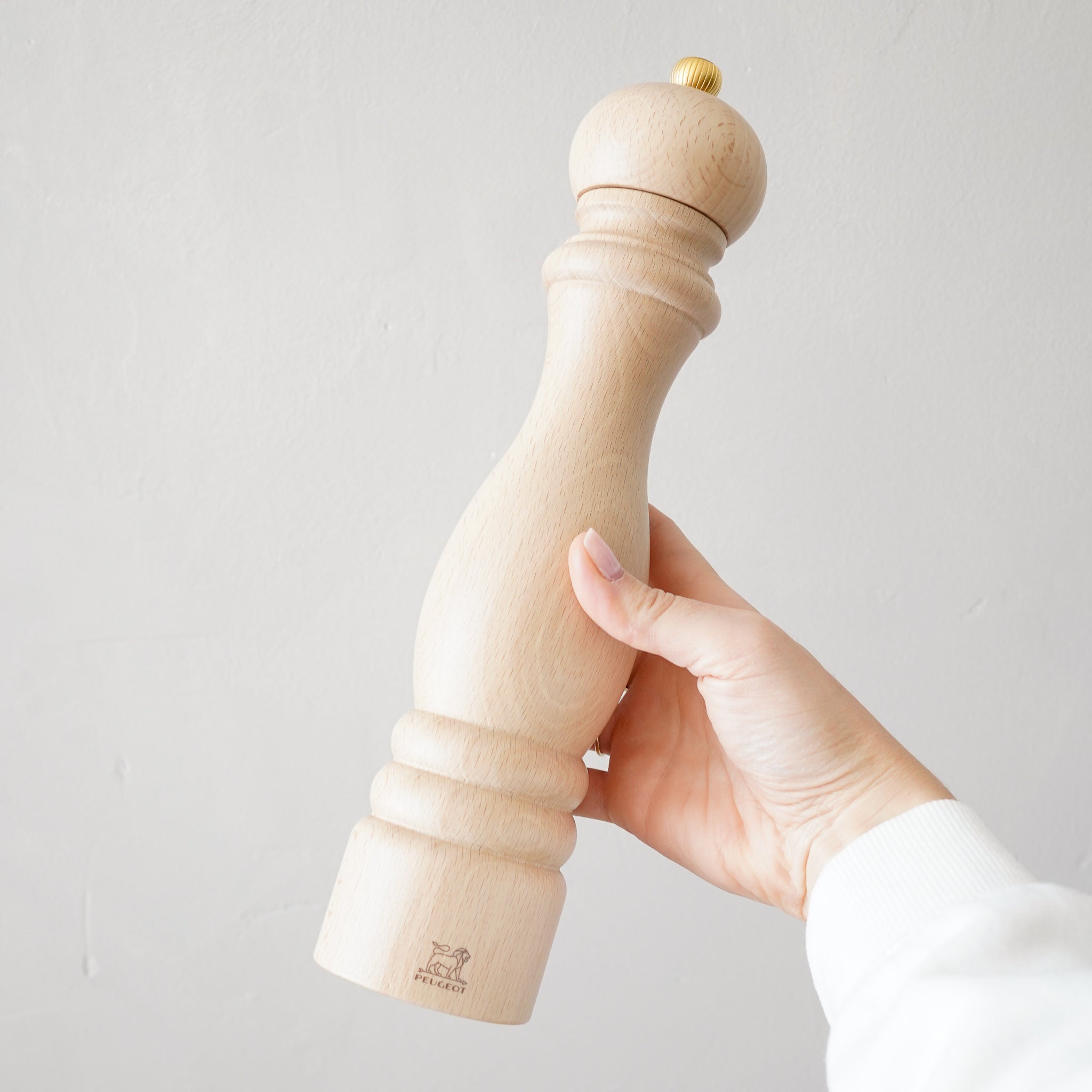 The Paris natural wood pepper mill is easily identifiable at a single glance. This essential model of the Peugeot mills, with its curved silhouette, is now ready to find a perfect spot on your table.