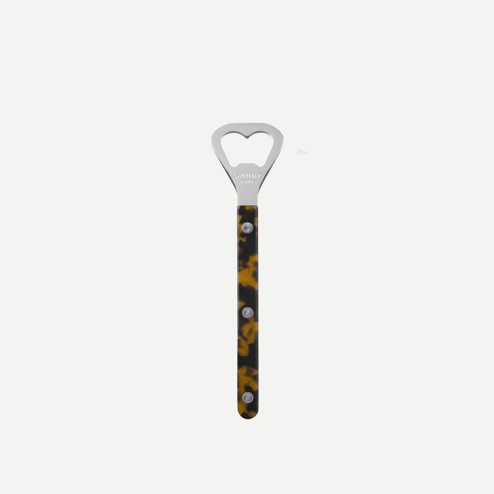 Elegant and functional, the Sabre Bistrot Bottle Opener draws inspiration from fine dining establishments. With visible rivets and exquisite materials in horn or tortoise effects, this sophisticated tool balances traditional design with contemporary flair. Available in various colors with a gloss finish to effortlessly open any bottle.