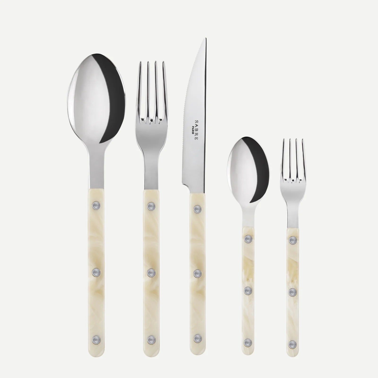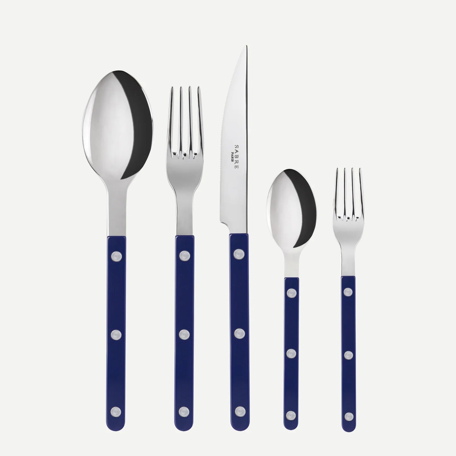 Inspired by charming bistros and cafés, the Sabre Bistrot Cutlery collection blends traditional design with contemporary elegance. Featuring visible rivets and a refined silhouette, these pieces showcase exquisite materials in sophisticated hues from rich red to deep blue, with luxurious horn and tortoise effects in gloss finish.