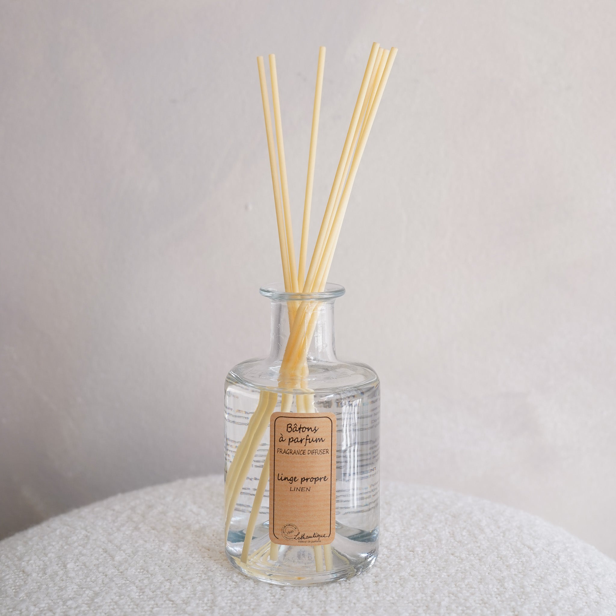 Bring the aromas of France into your home, with Lothantique’s line of Scented Diffusers! Brilliantly fragranced, the Authentique Collection’s Scented Diffusers are an easy way to scent the home. Just place the reeds into the bottle and the fragrance travels up and diffuses into the air! Each bottle lasts approximately 3-–4 months. 200mL/6.66 us fl. oz.
