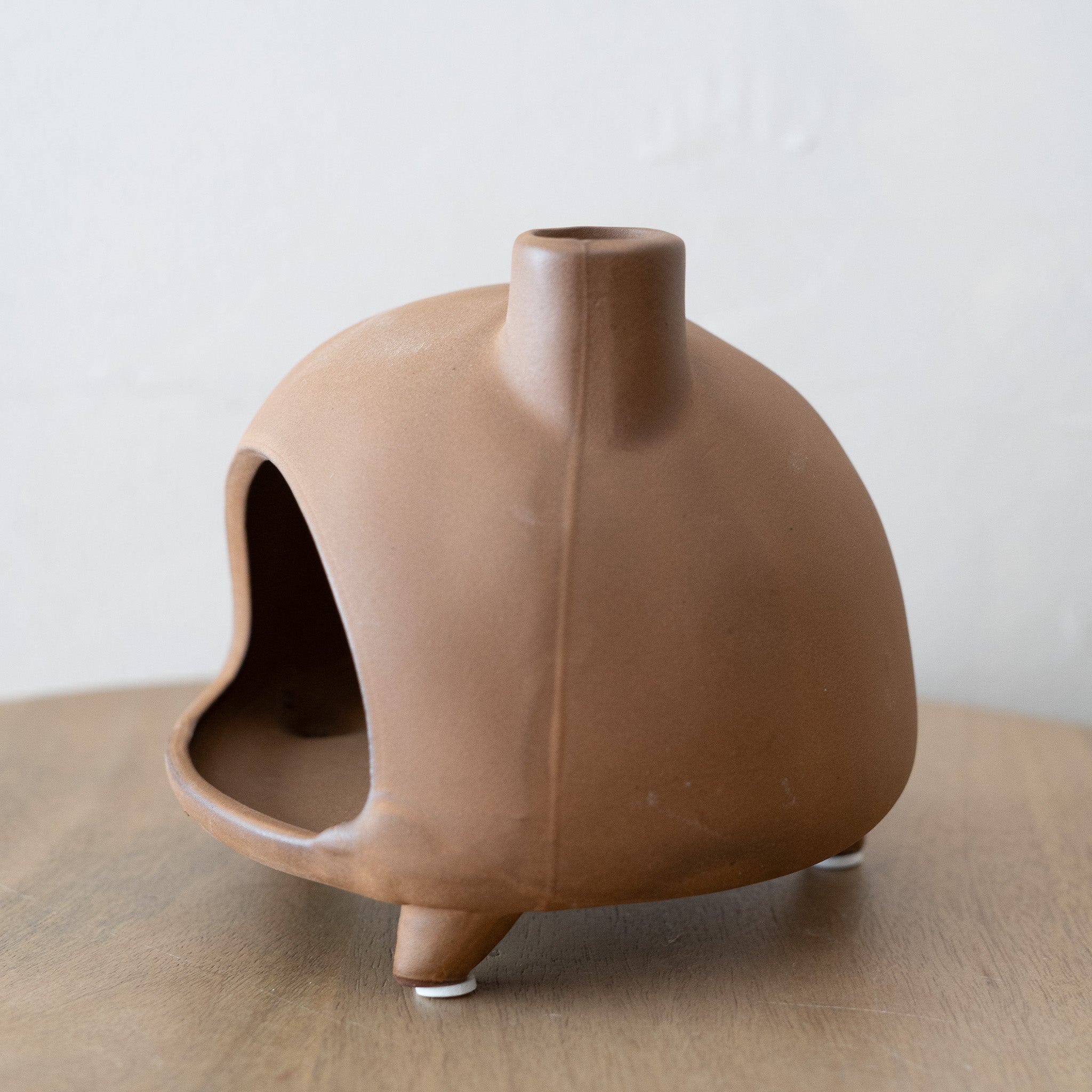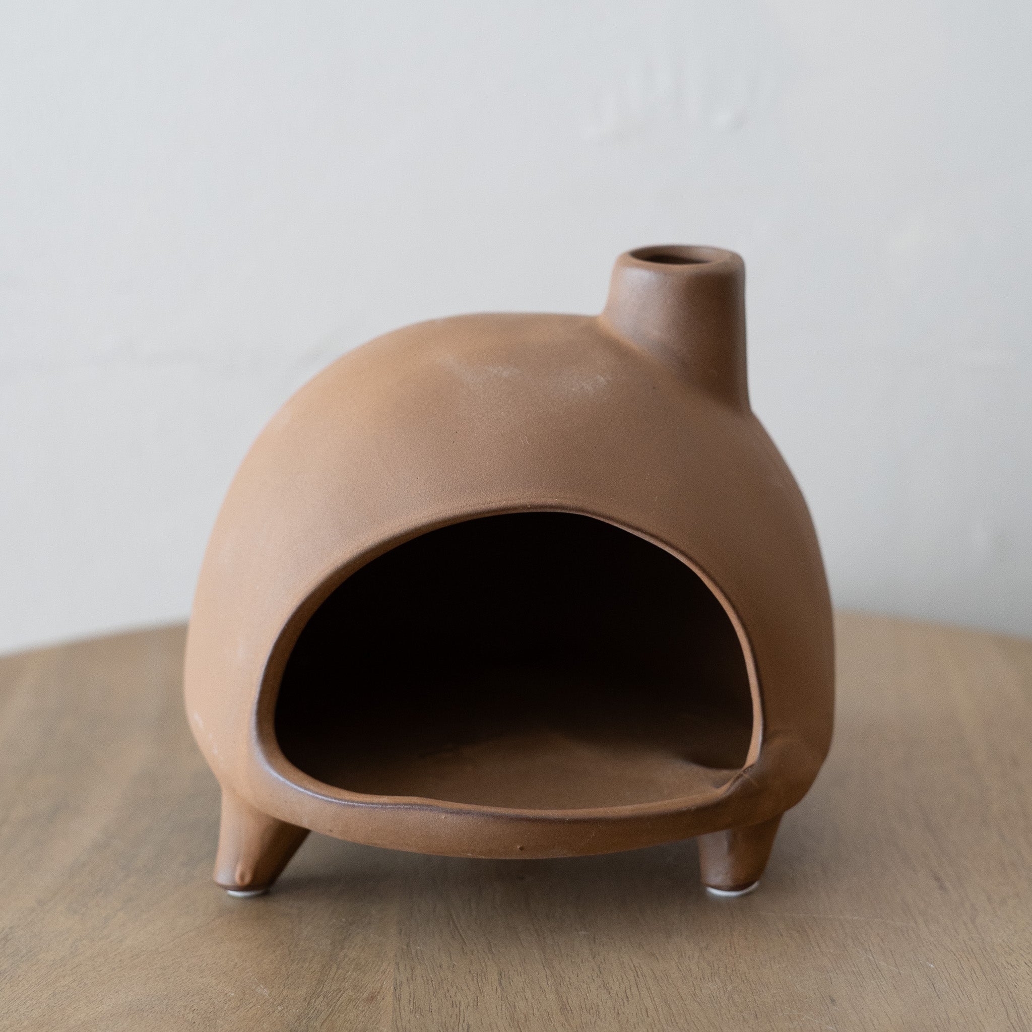 5" Round x 4-3/4"H Stoneware Footed Incense Chimney, Reactive Glaze, Terra-cotta Color (Each One Will Vary)