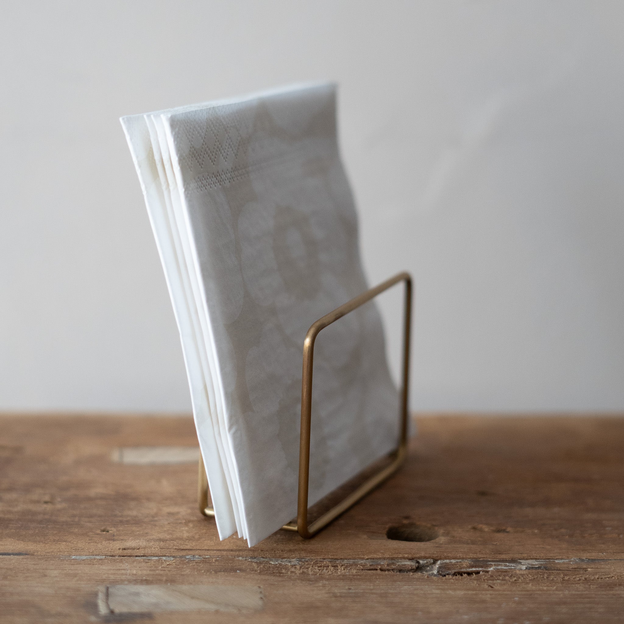 A minimalistic brass paper napkin holder, perfect for organizing paper napkins or coffee filters in your dining area or kitchen. Its versatile design allows for various other uses. **Due to the handmade character irregularities may occur.