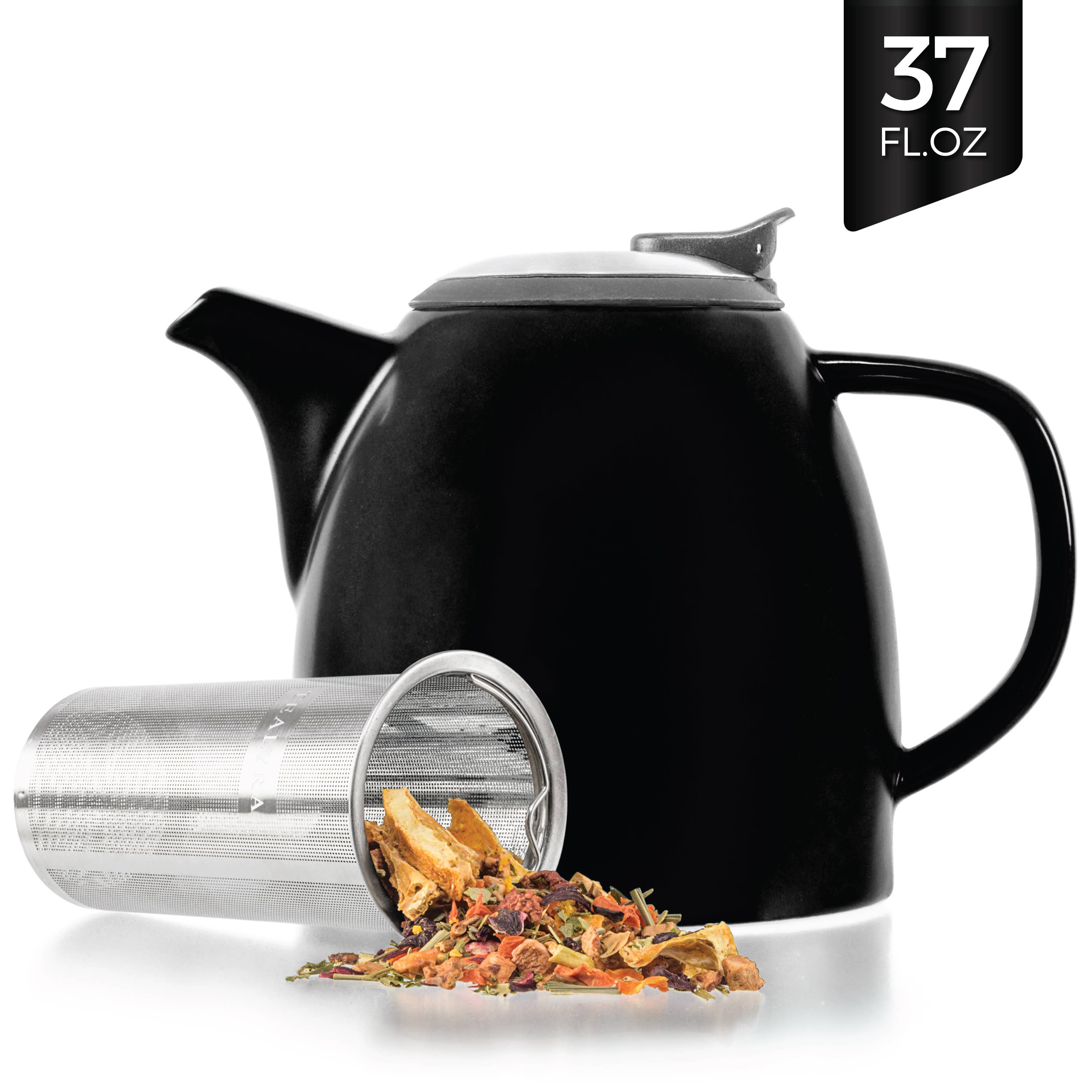Size: 37oz, removeable stainless steel strainer/infuser