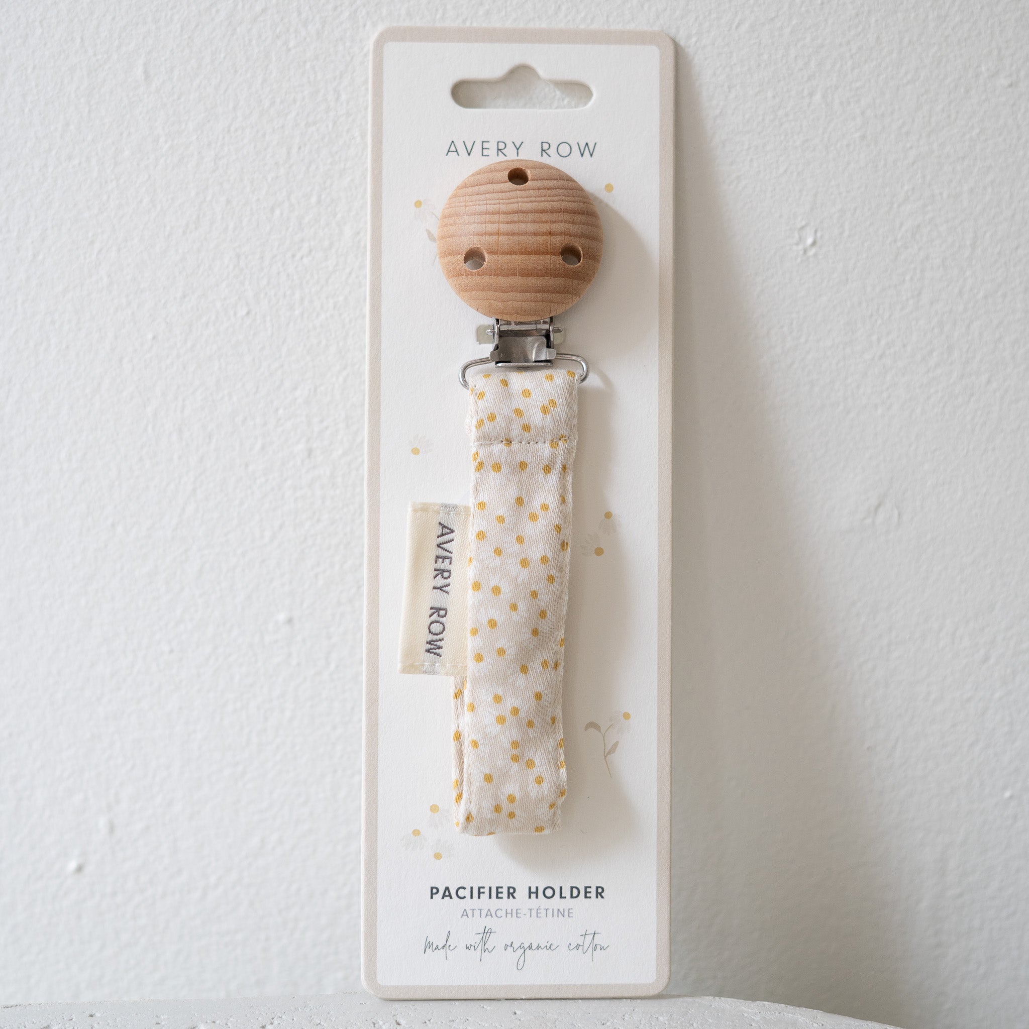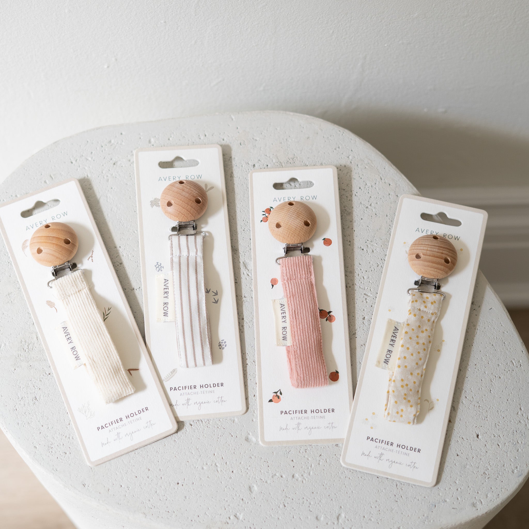 The Avery Row pacifier clip attaches to your child’s clothes to keep their pacifier close and clean, so it’s never lost or dropped.