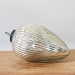 Add a refined shimmer to your holiday decor with the Giant Glass Egg Holiday Ornament in Silver or Clear. Crafted from recycled glass, its reflective surface captures and enhances the warm glow of festive lighting. The organic egg shape brings a natural yet sophisticated element to seasonal styling, whether displayed on a tree, nestled in a decorative bowl, or arranged on a mantel.