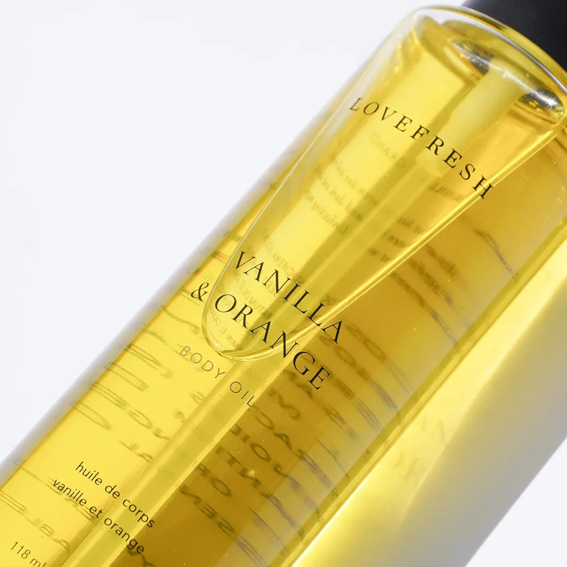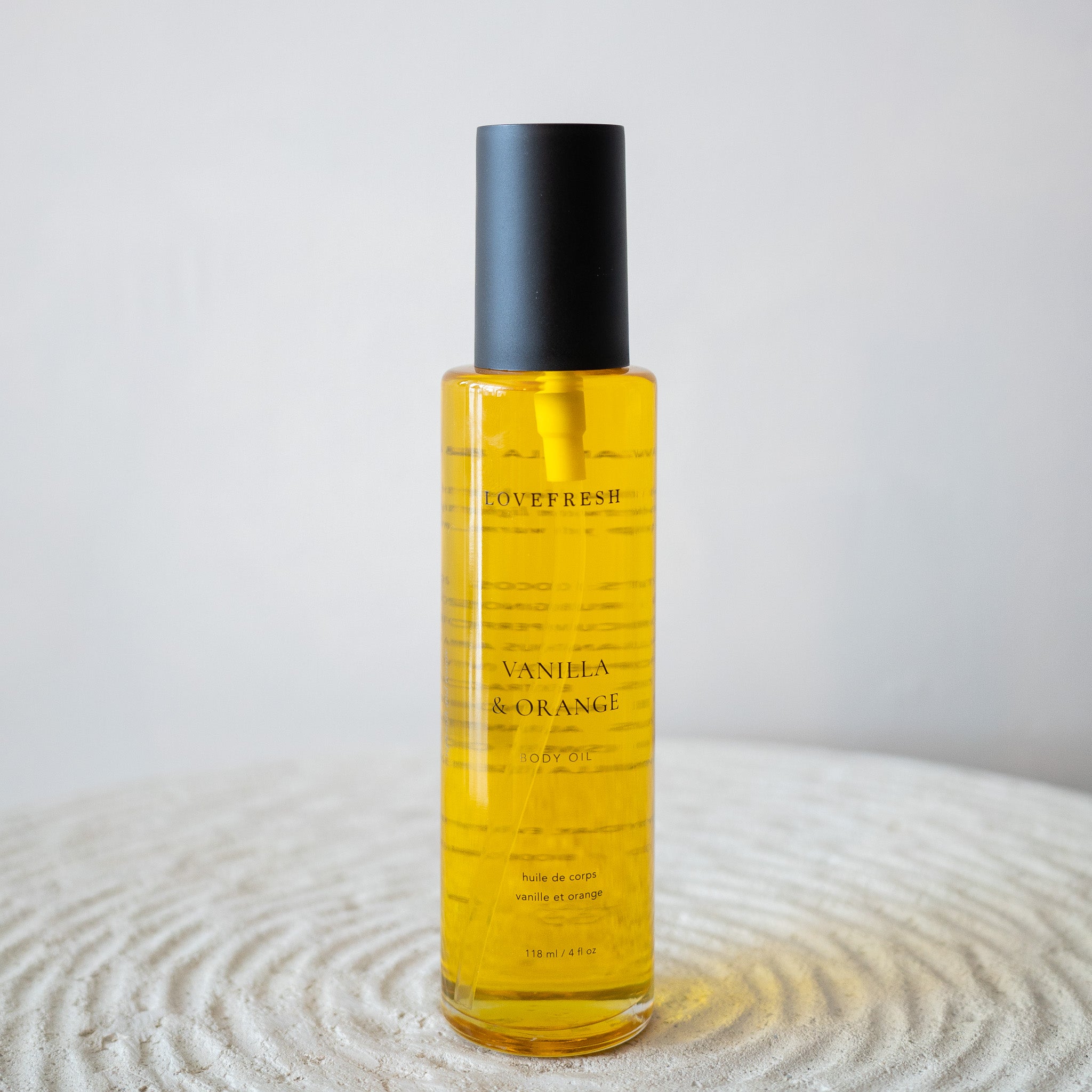 This restorative body oil will quickly absorb into skin, calming and soothing even the driest areas. Enjoy the delightful combination of sweet orange and vanilla scent while your skin radiates with a natural glow.
