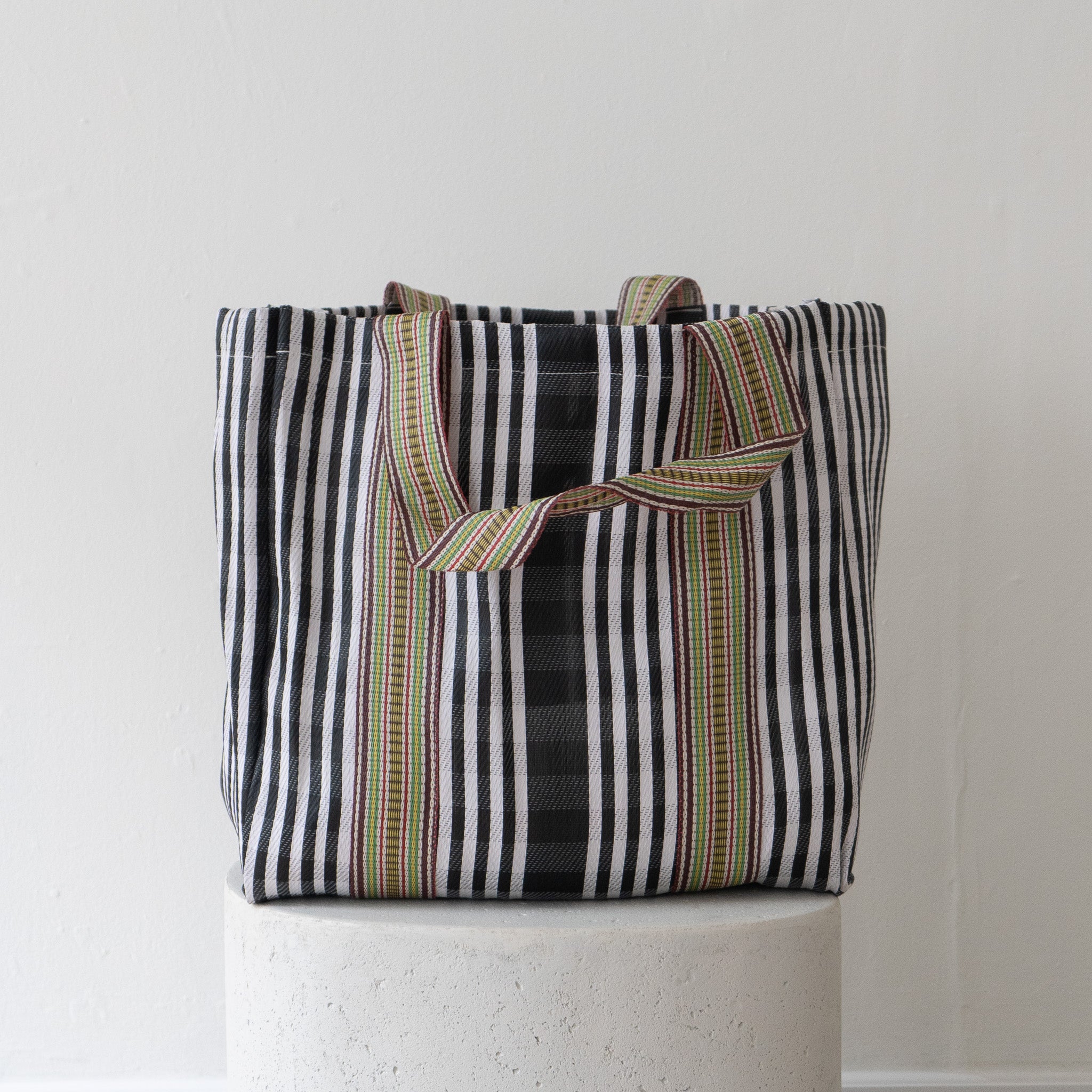 Purchased this as a prettier alternative to my grocery store bags. Sturdy and handy and has more structure than my cotton tote bags. Perfect! Carrying it with me every day!