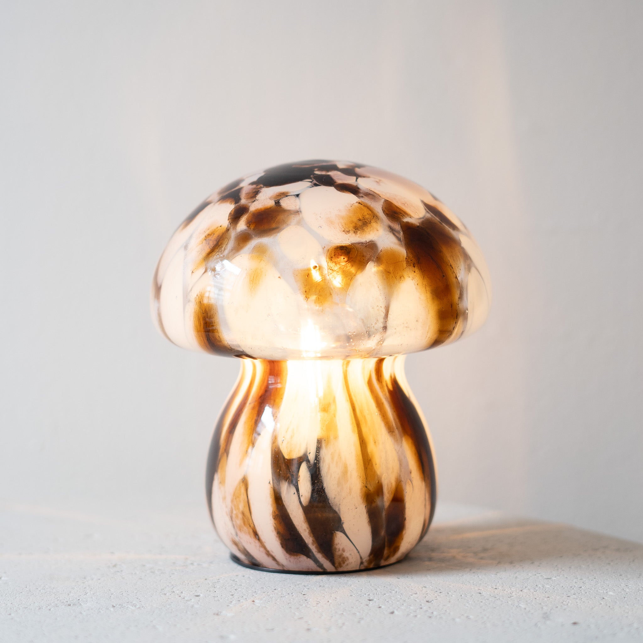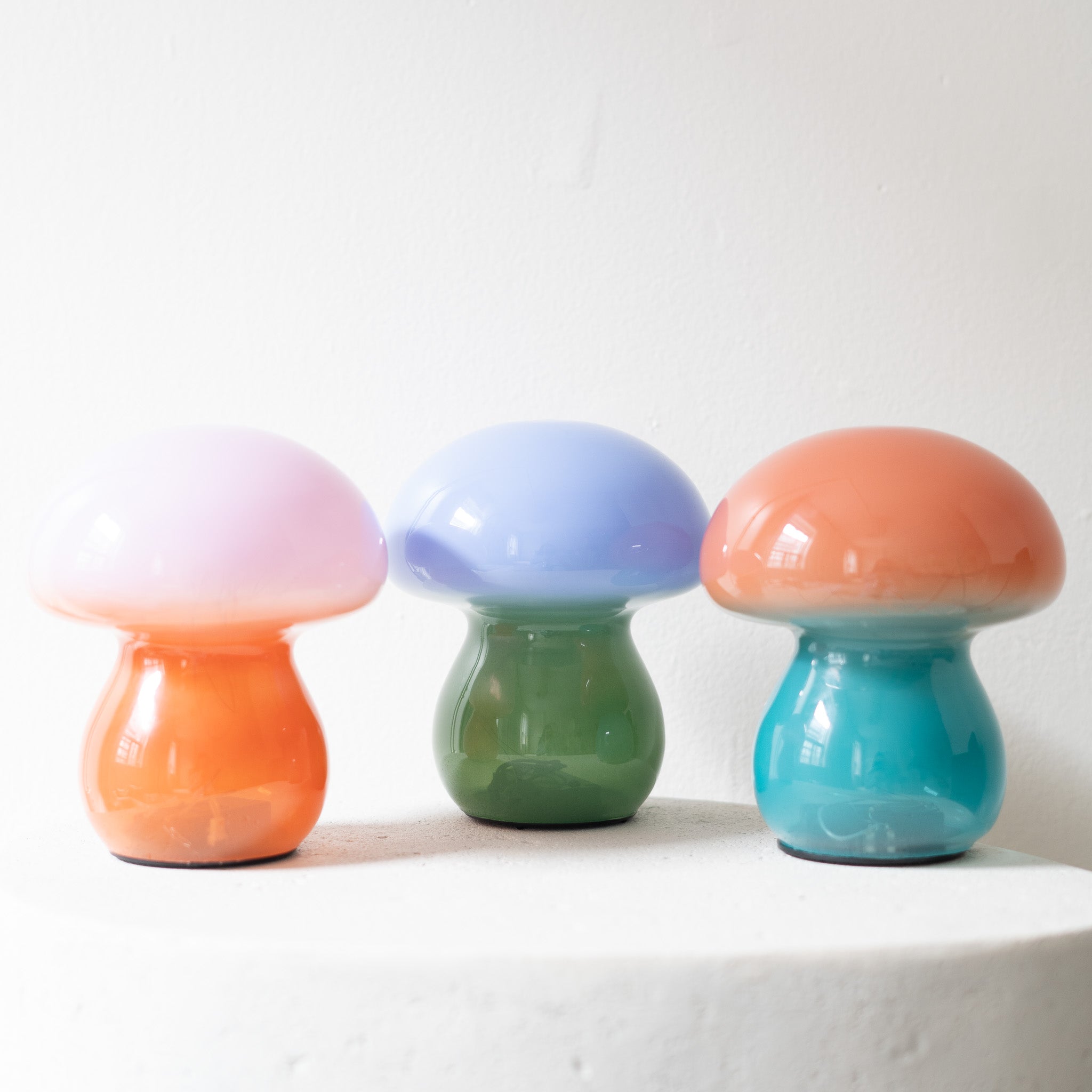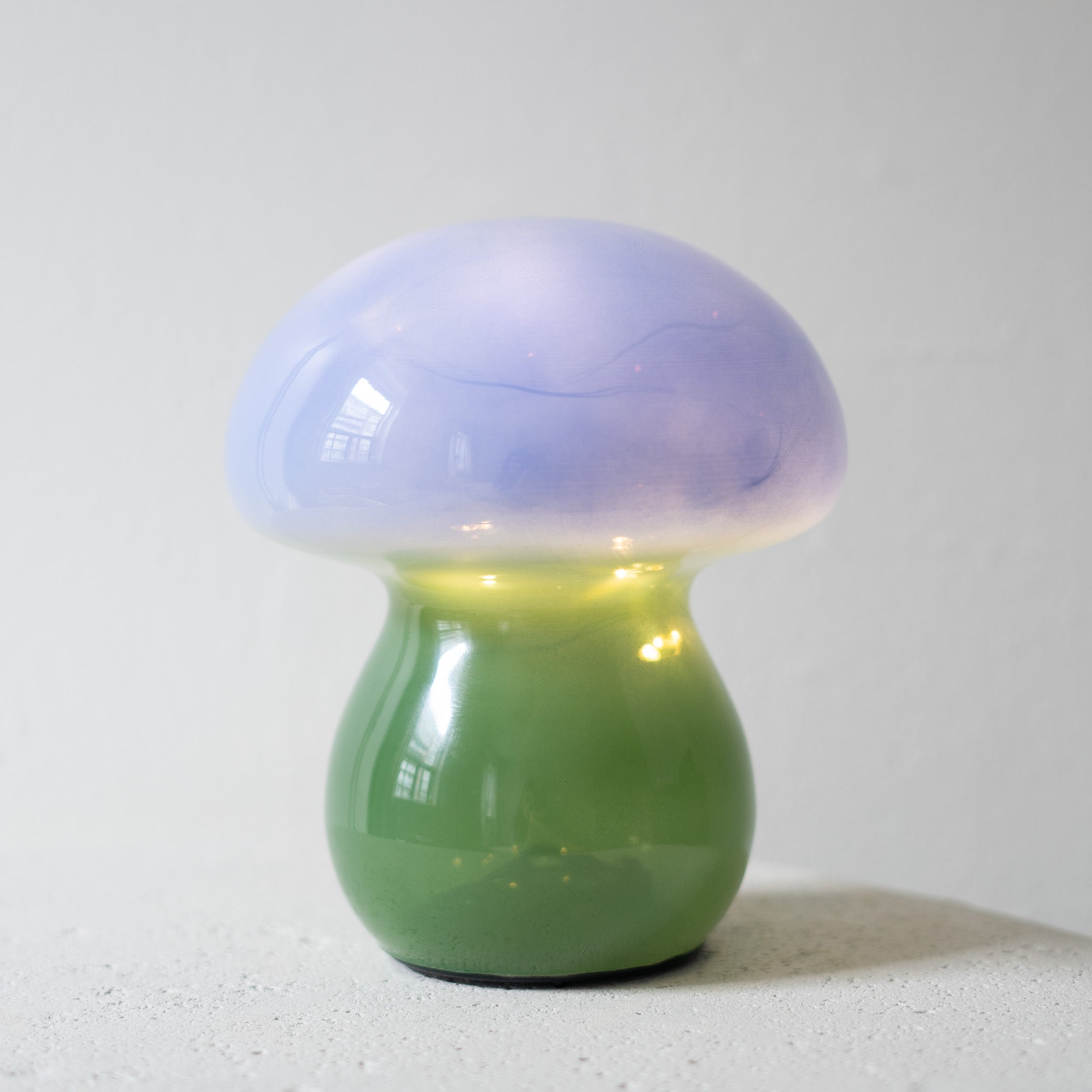 Introducing the Portable Mushy Lamp, a bi-colour glass lamp that will bring a cozy warmth to any corner of your space. Powered by AAA batteries (not included), this enchanting lamp illuminates from within with an LED garland, creating a soft and inviting atmosphere. Elevate your home decor with this truly unique and elegant piece.