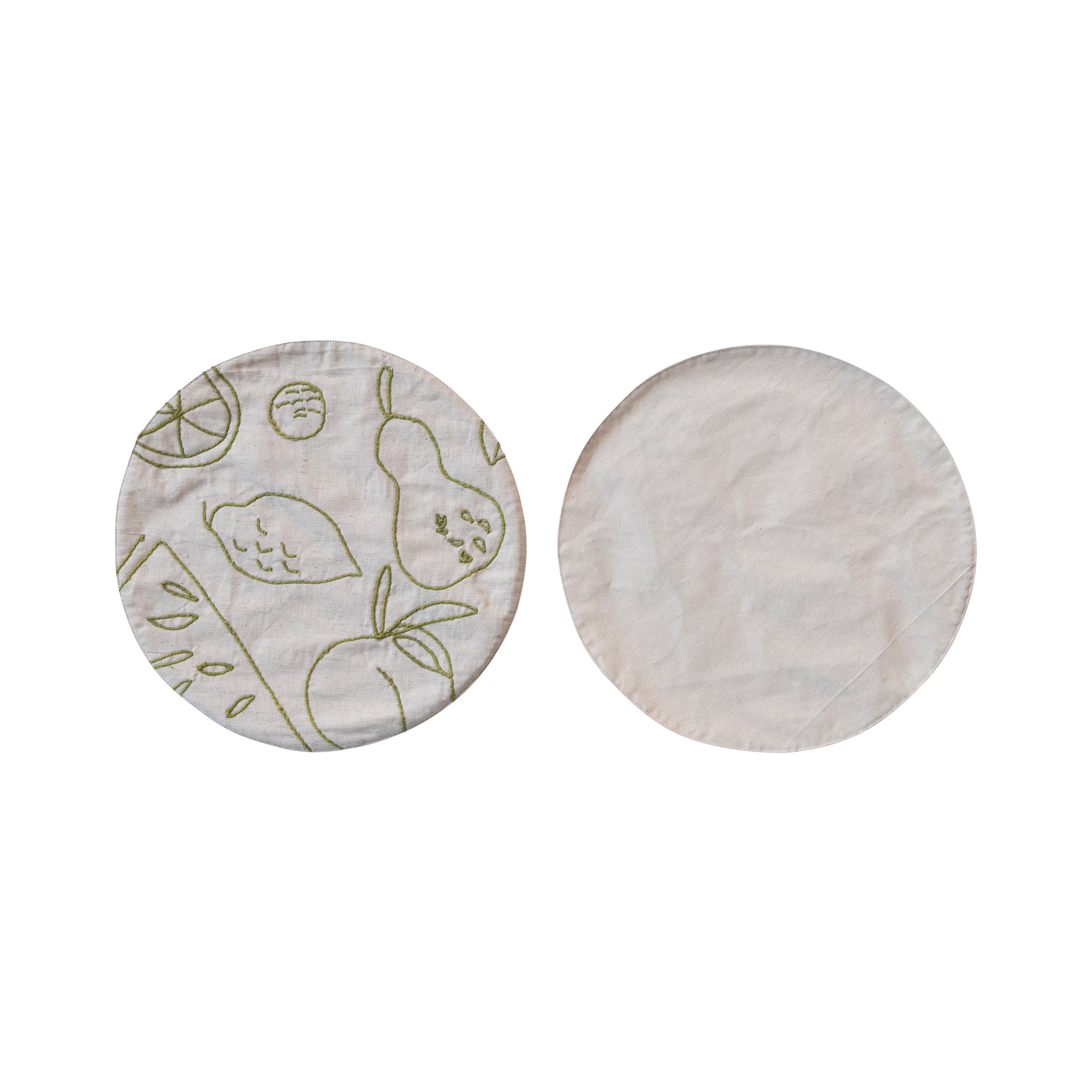 15" R Cotton & Linen Placemat w Fruit, Natural & Green