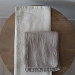 Have double the fun with this pair of Stone Dash Hand towels, featuring a soft, loosely woven cotton material. Versatile and lightweight, they'll quickly dry off all your messes in the kitchen or bathroom.
