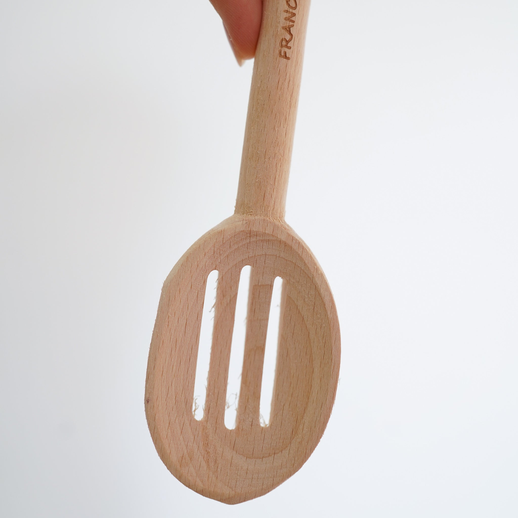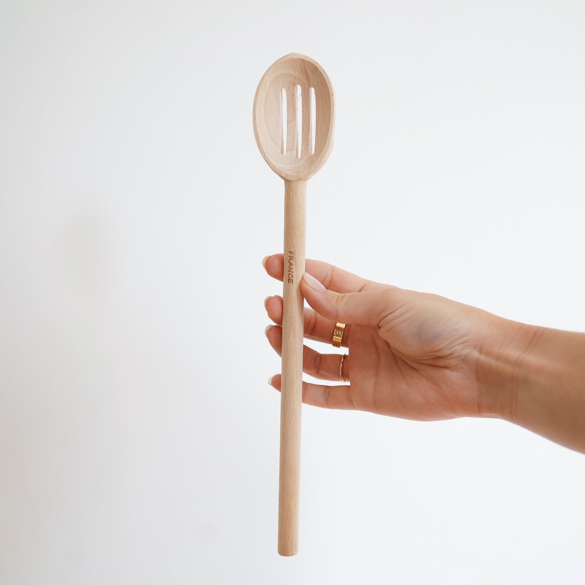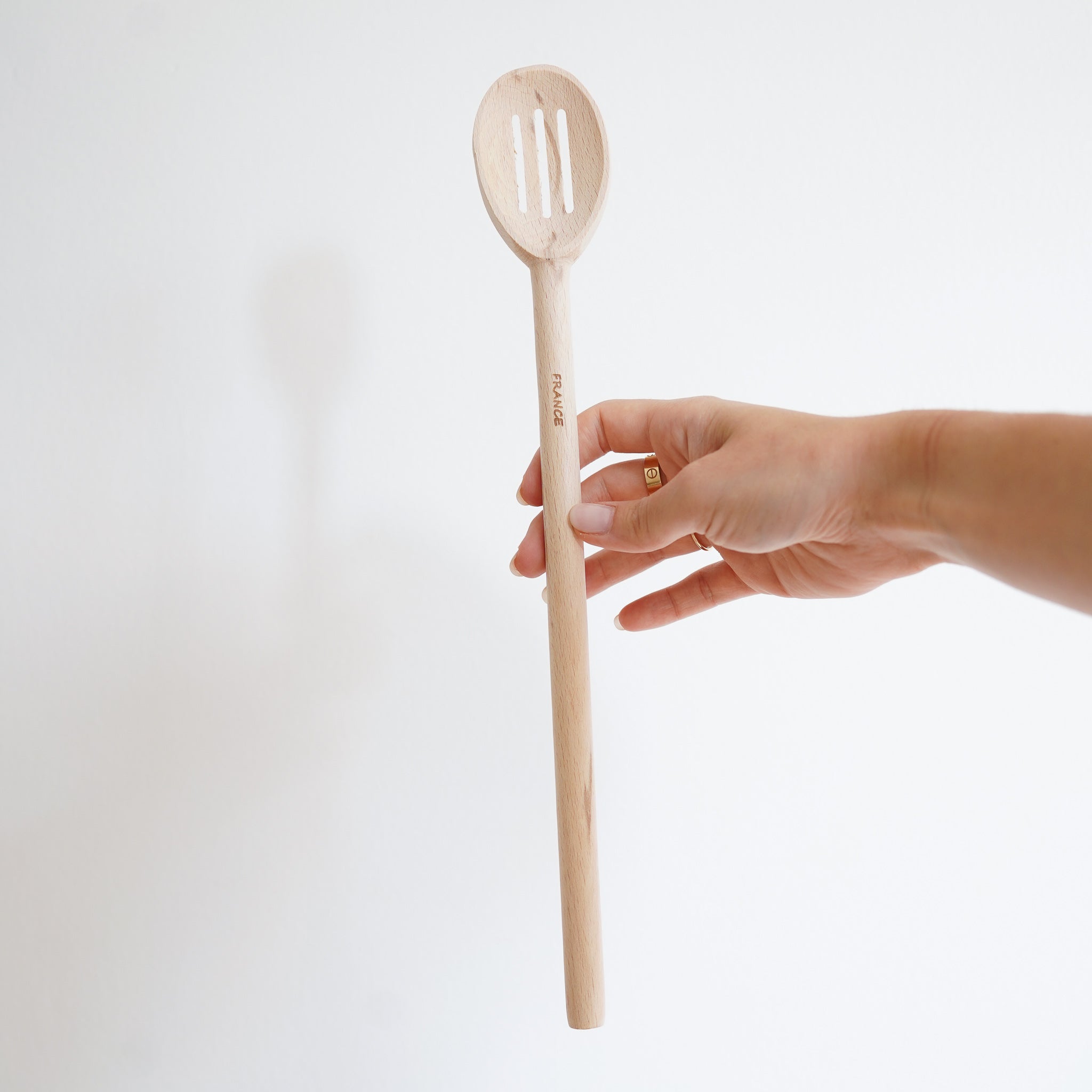 Beechwood French cooking Spoon Made with premium beechwood, this French cooking spoon is designed to last for any occasion. Its sleek ergonomic handle provides a secure grip with complete ease and comfort, allowing you to chef with confidence.