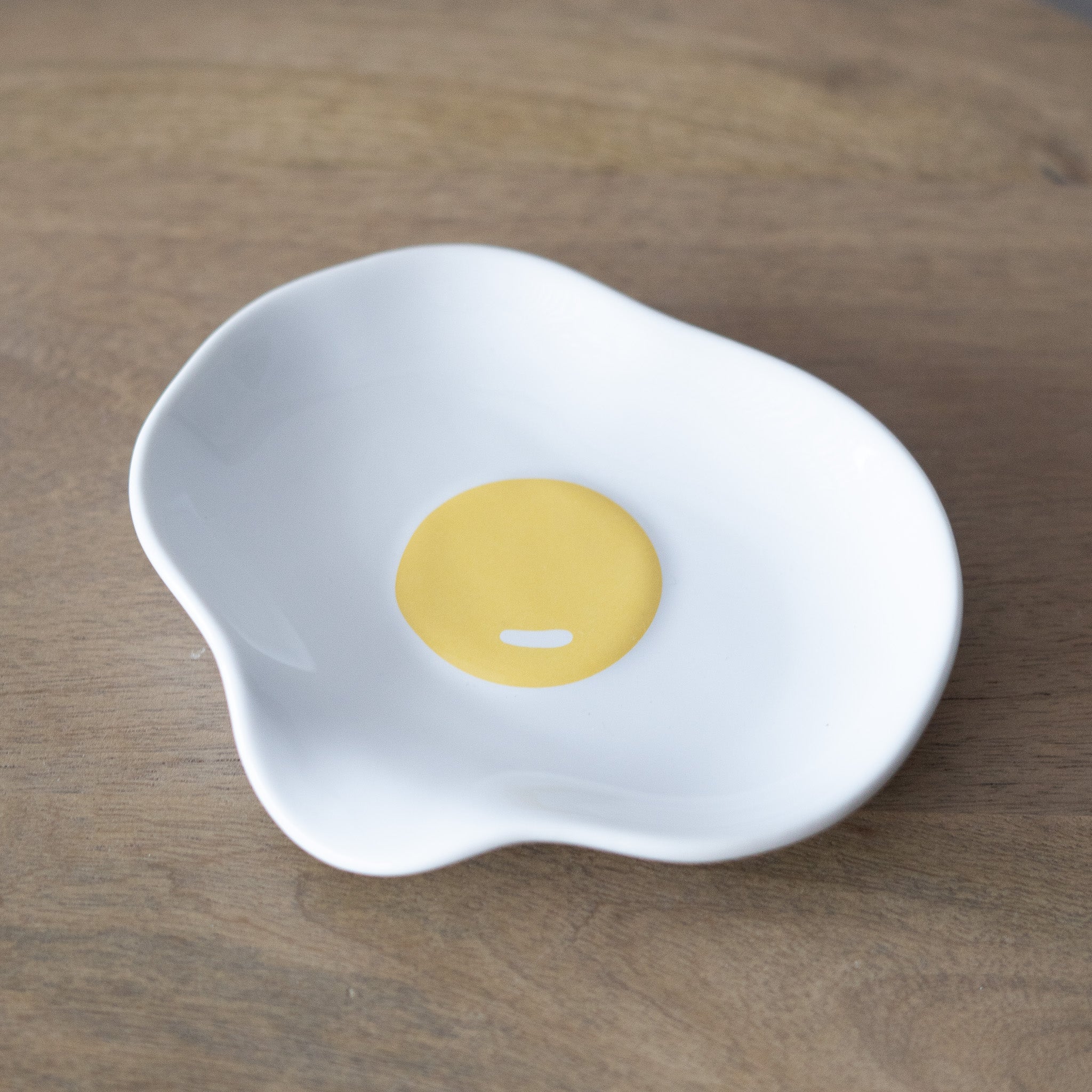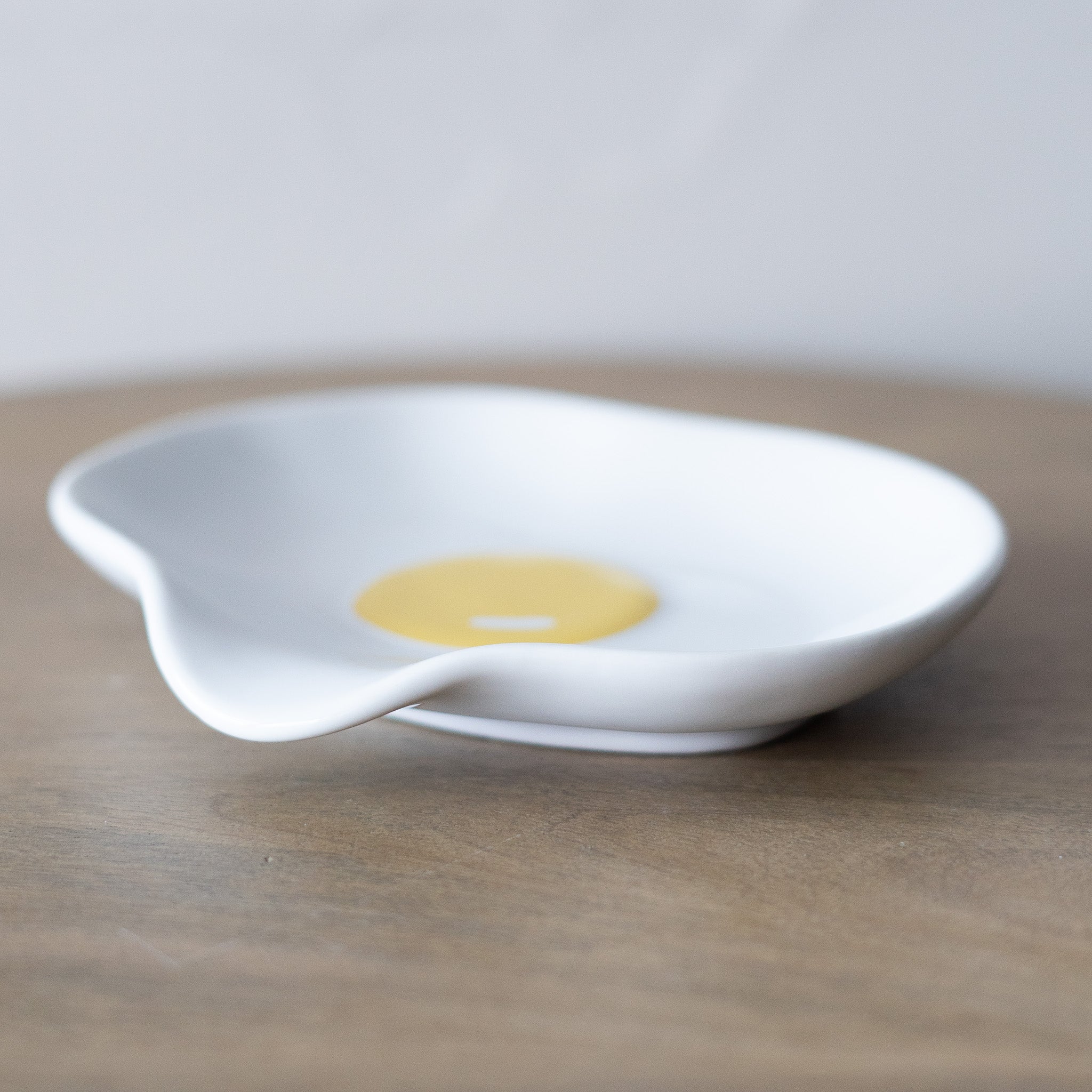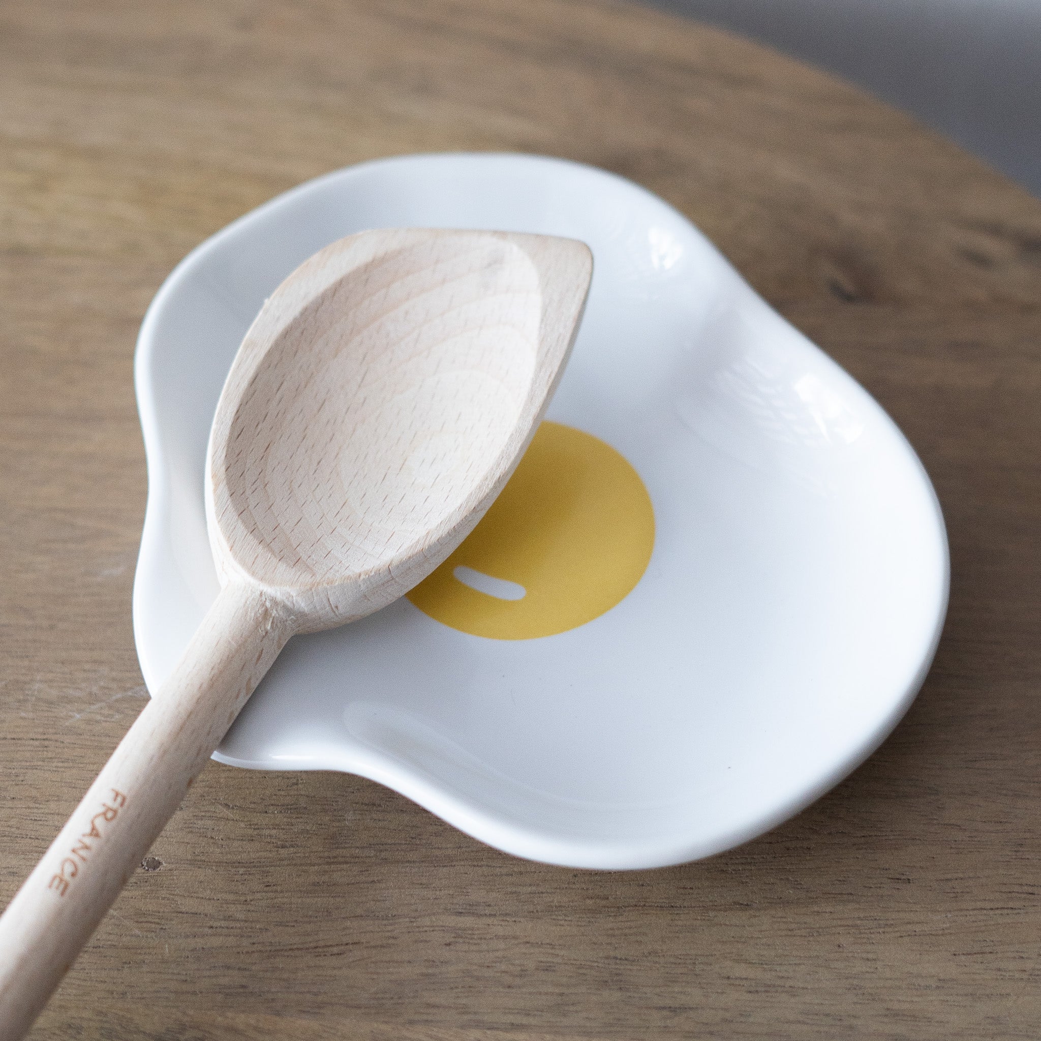 Spoons will love resting on this charming design. A pressed surface adds personality, while a dip provides a comfortable spot for spoons. With these clever eggs, things are always sunny side up and over easy—and that's no yolk!