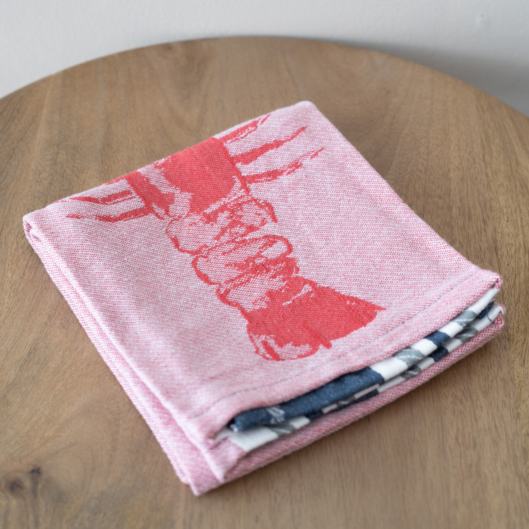 Spread the oceanic love with the Lobster Jacquard Dishtowel. The lively crustaceans and cool blue tones are a tribute to the sea's abundance.